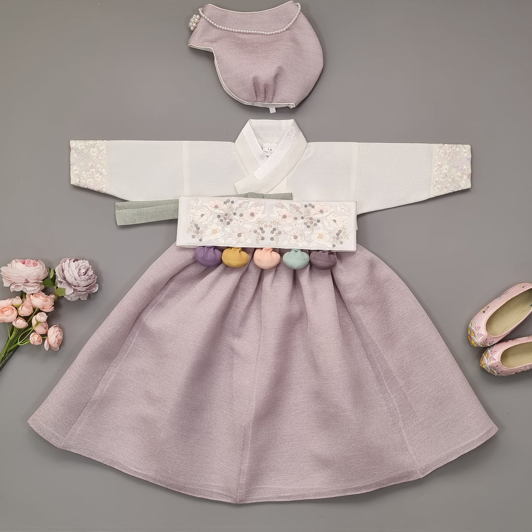 Hanbok Girl Baby Korea Traditional Clothing Set First Birthday Celebration Party 100th Birth Celebration 1–15 years Ivory Violet HG165