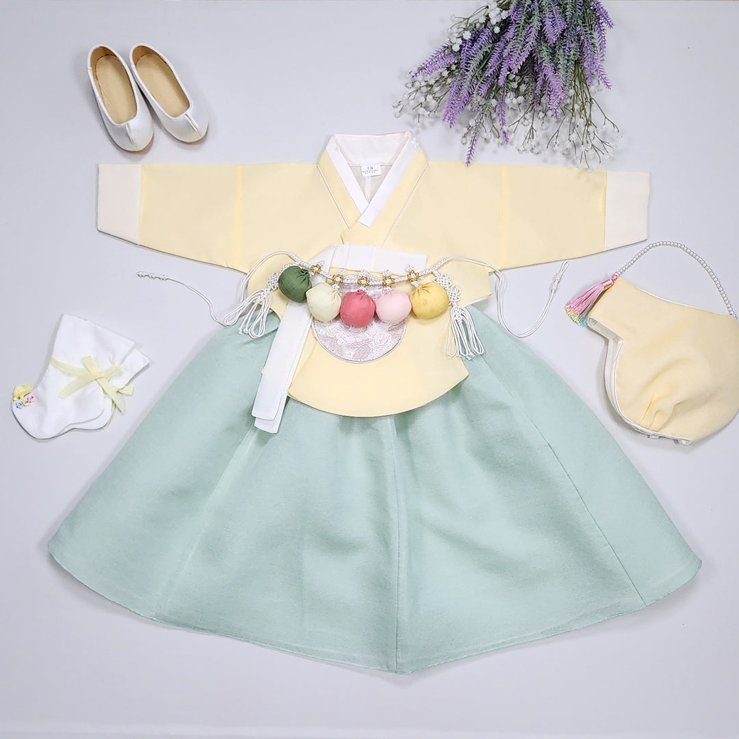 Hanbok Girl Baby Korea Traditional Clothing Set First Birthday Celebration Party 100th Birth Celebration 1-8 years Yellow Flower