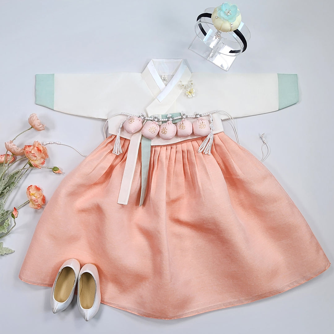 Hanbok Girl Baby Korea Traditional Clothing Set First Birthday Celebration Party Celebration 1–8 years Ivory Peach DGH103