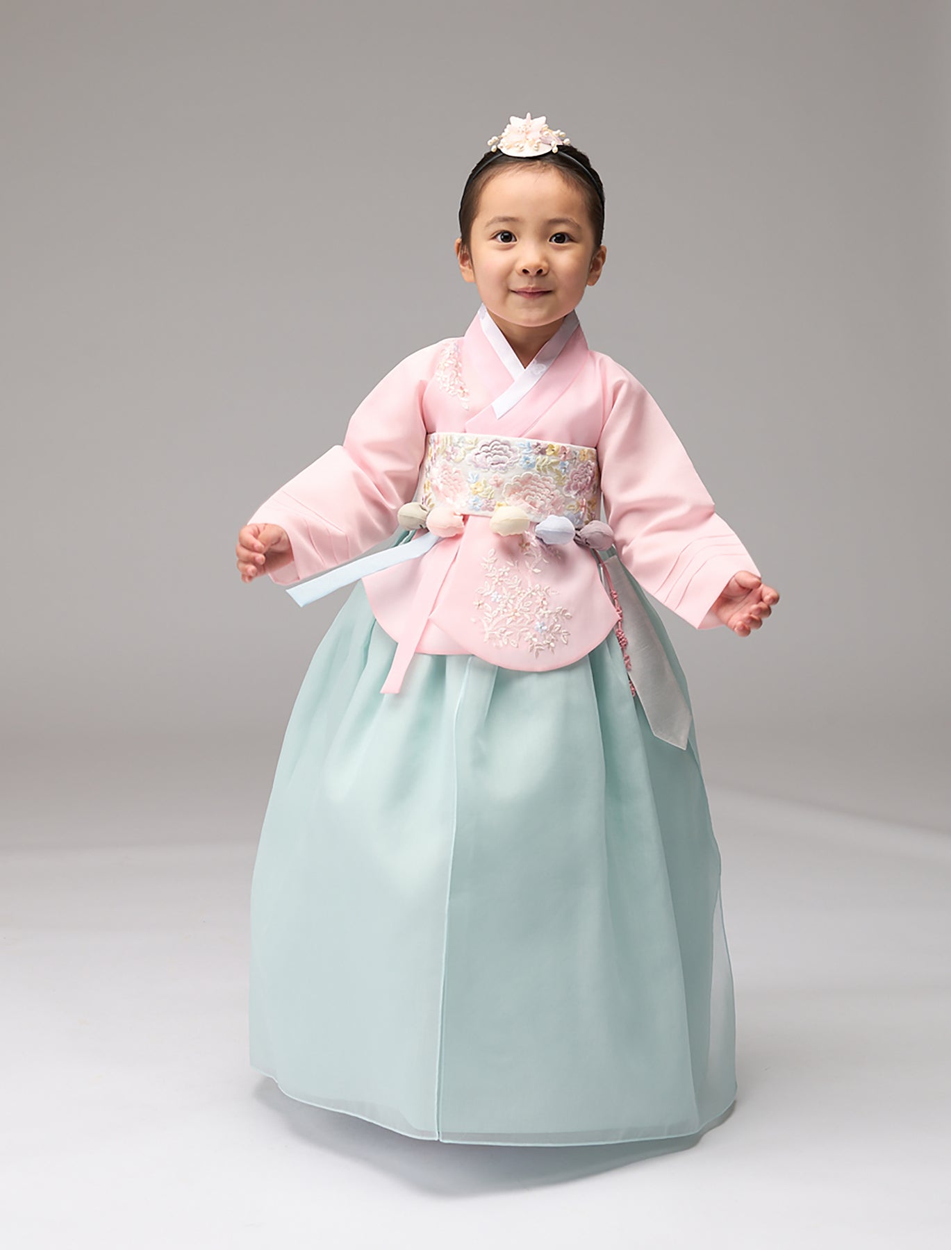 Hanbok is the traditional clothing of Korea, and children are customarily dressed in hanbok for their first birthday celebration.