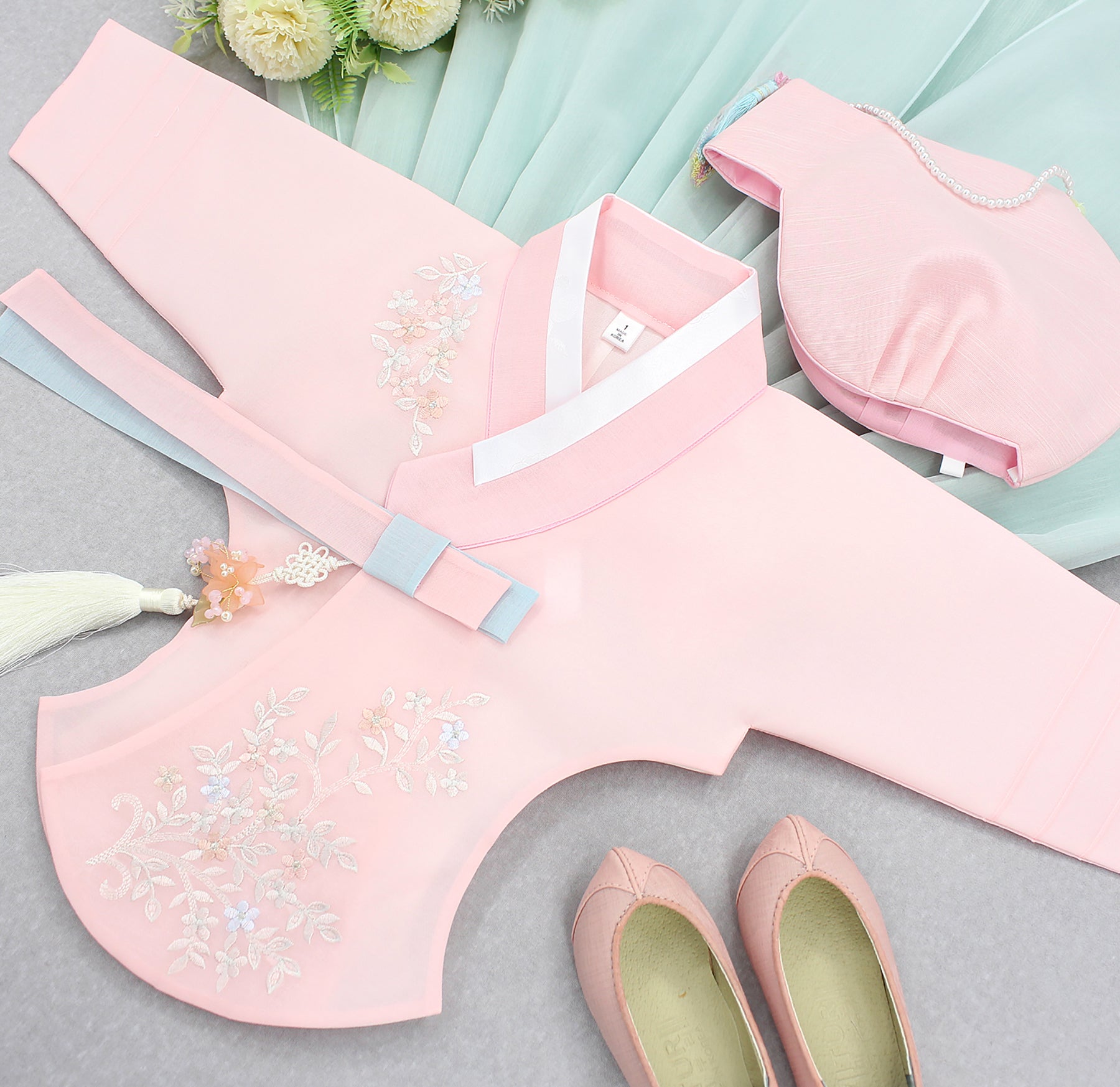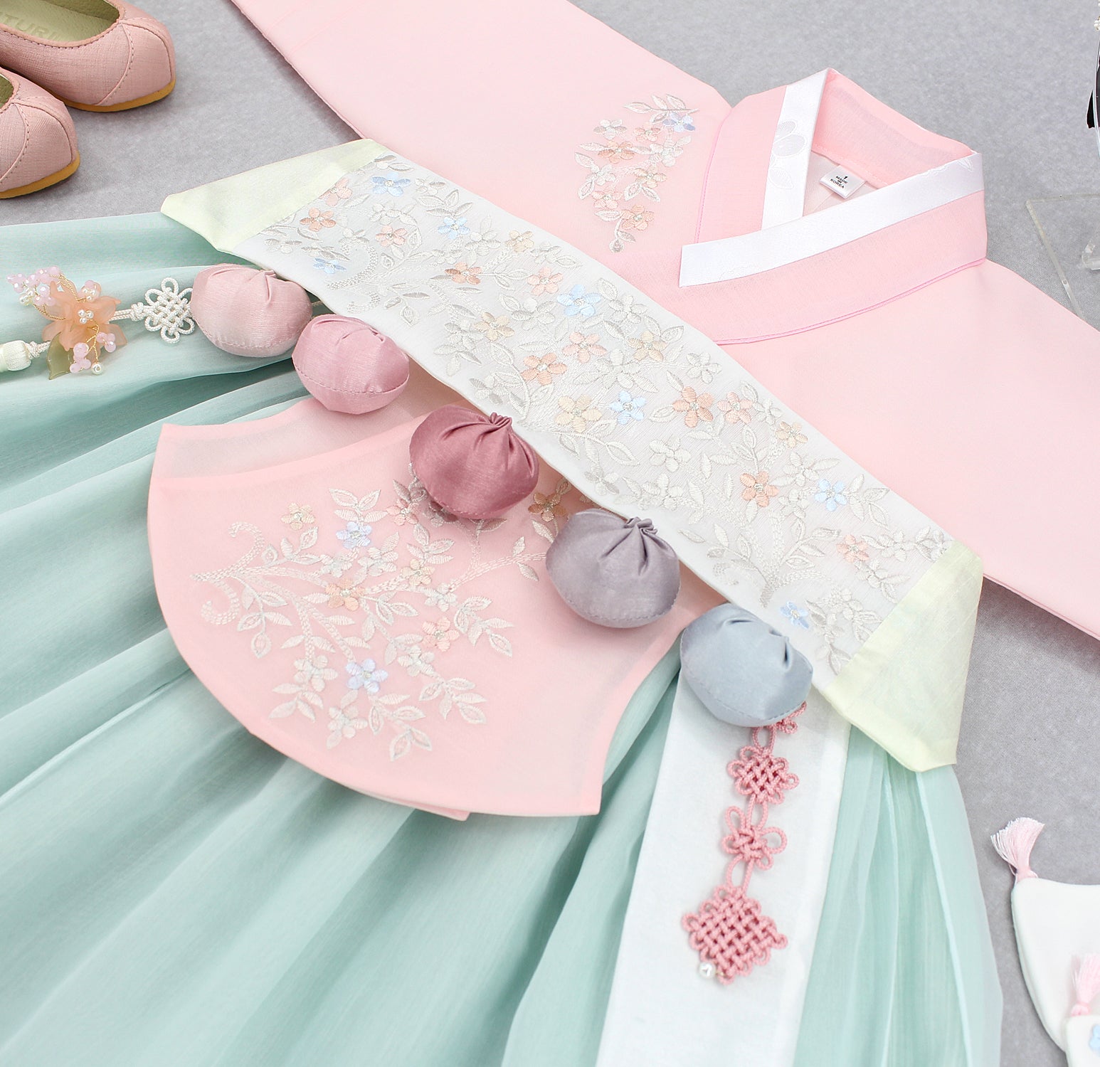 Hanbok Girl Baby Traditional Korean Clothing Set First Birthday (Dol) Celebration Ages 1–8 | Pink & Mint Embroidery | DGH107
