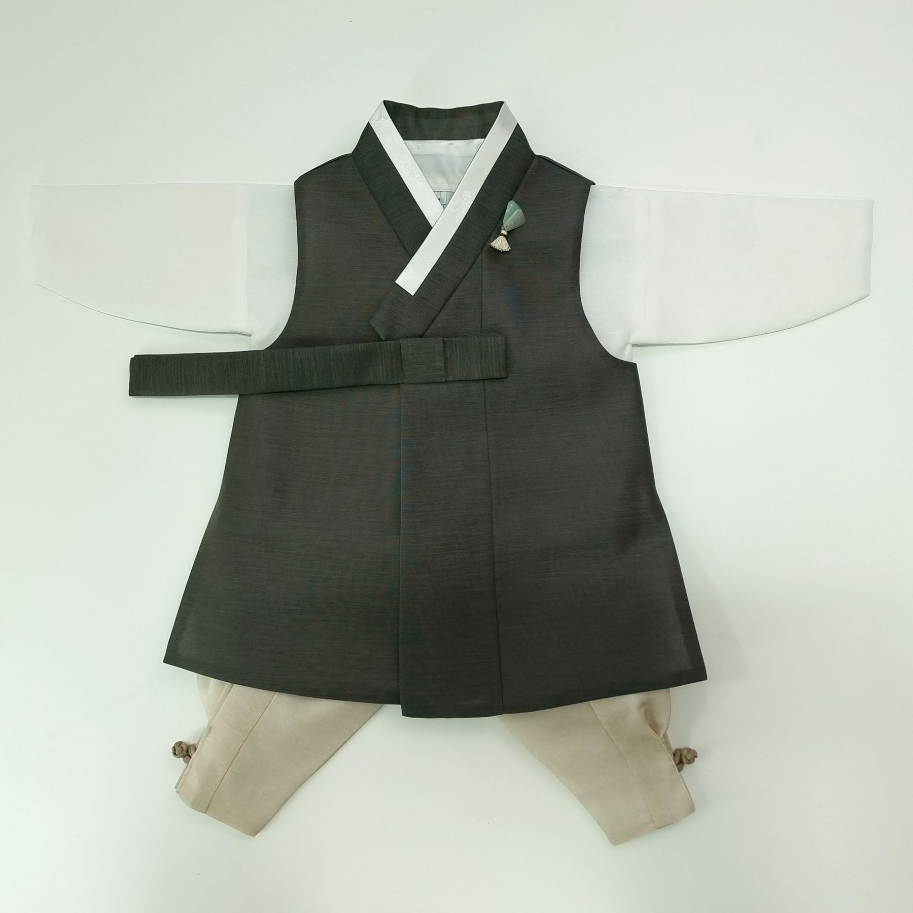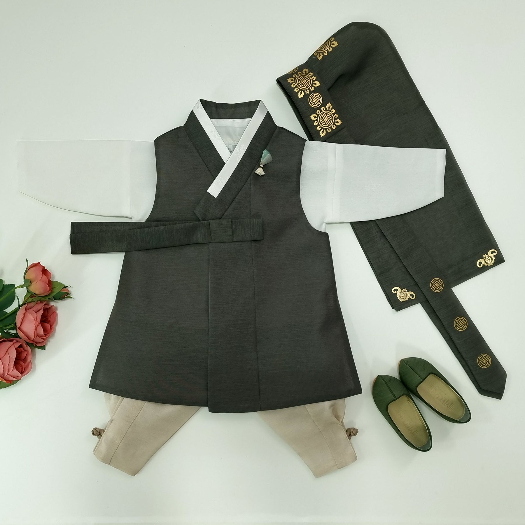 Dark Green Hanbok is traditional clothing of Korea. And the child would be dressed up the Hanbok in the first birthday.