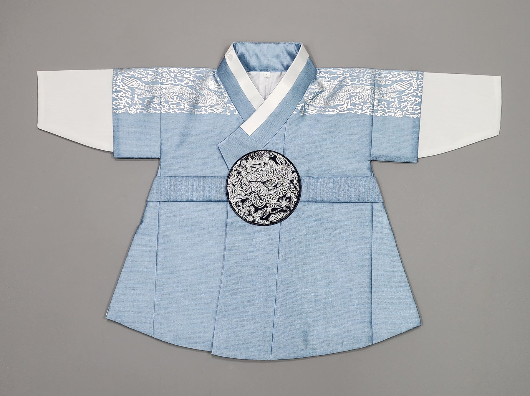 Dark Green Hanbok is traditional clothing of Korea. And the child would be dressed up the Hanbok in the first birthday.
