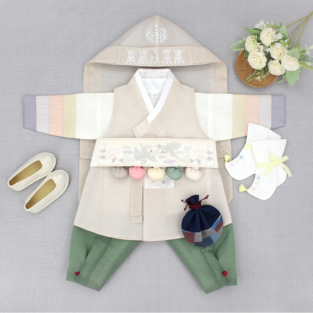 Korean Traditional Boy Baby Hanbok Dol Baikil Party Celebration 100th Days 1-10 Years Beige Khaki DDB117