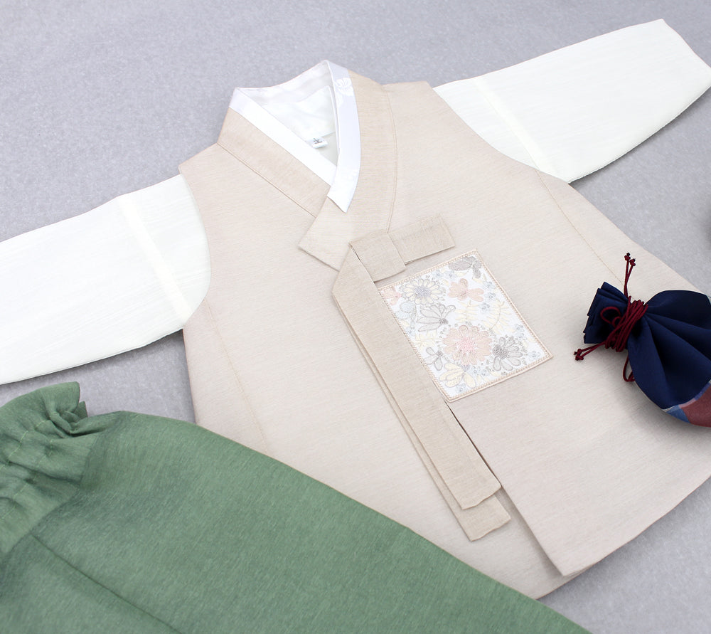 This hanbok includes top jacket /inner jeogori / pants. (3 Pieces)