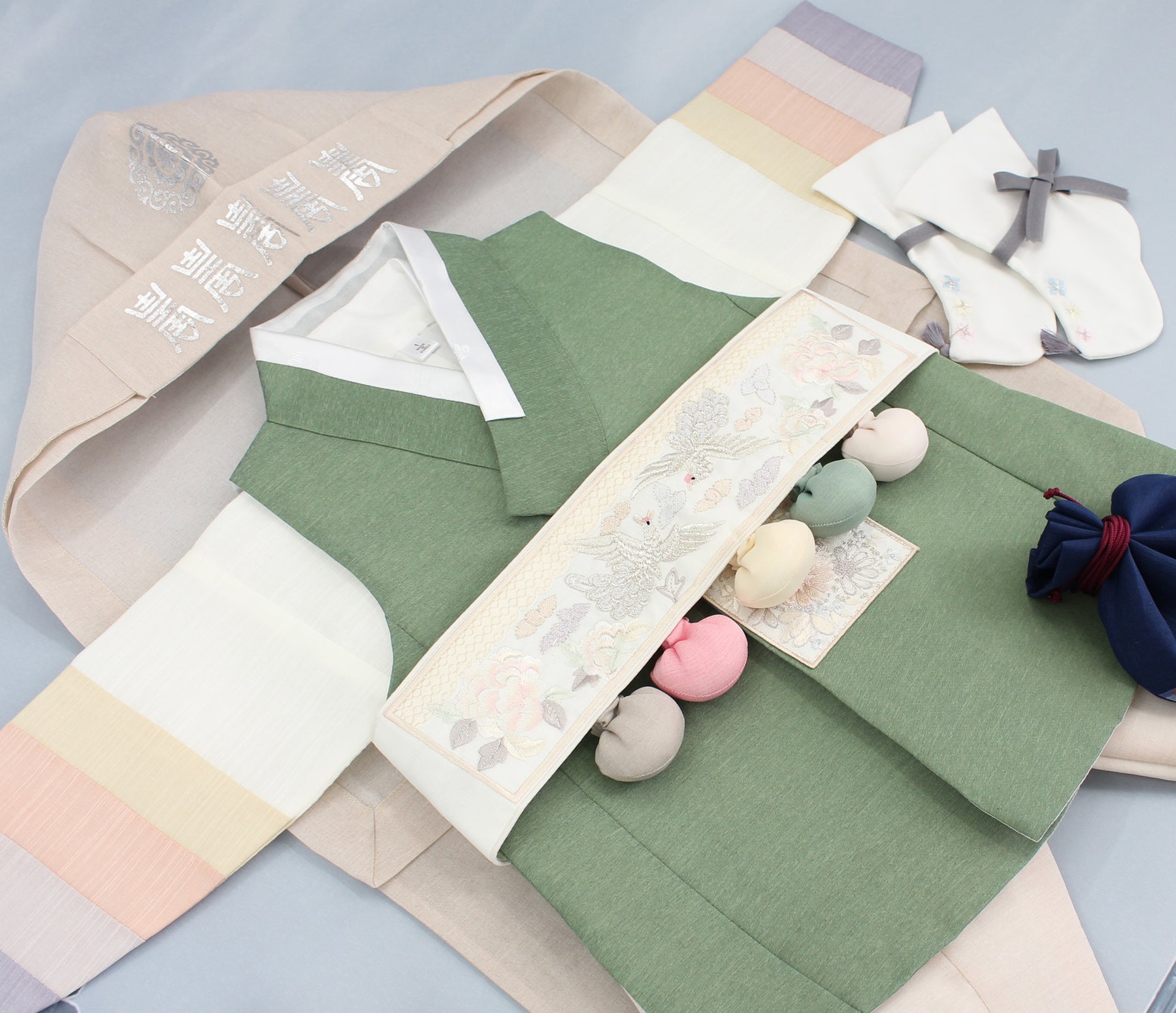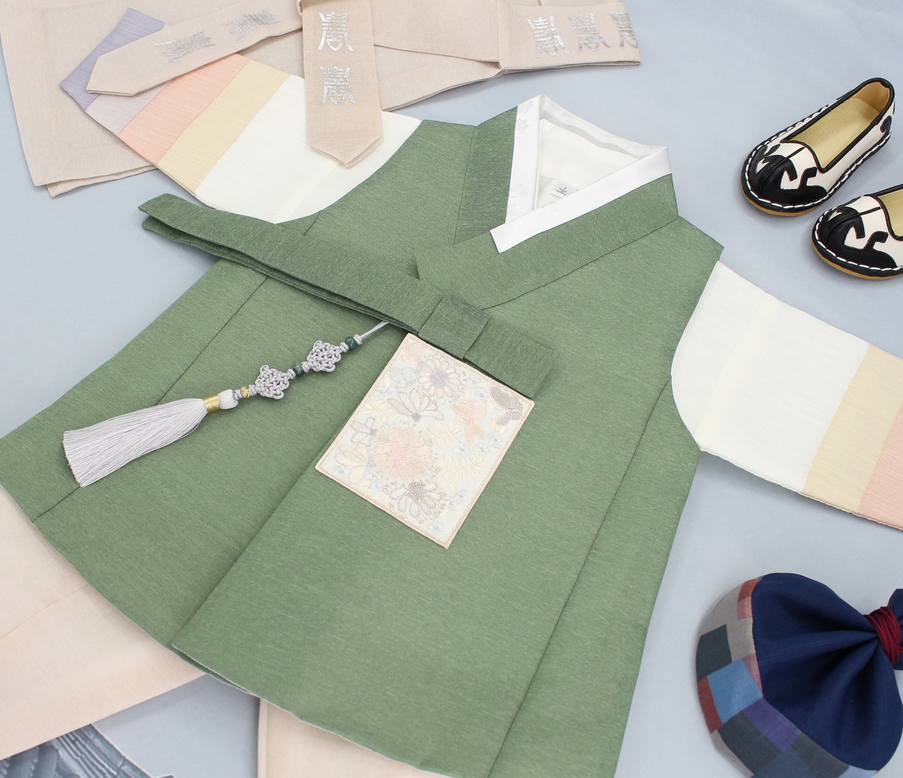 This hanbok includes top jacket /inner jeogori / pants. (3 Pieces)
