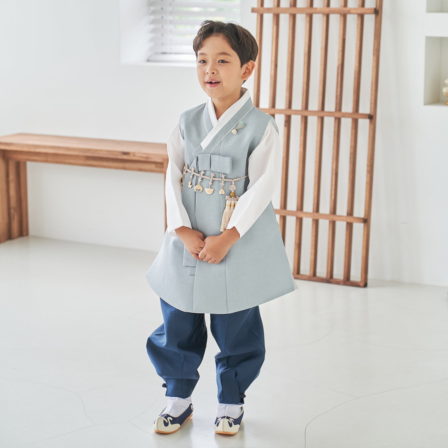 This hanbok includes top jacket  /inner top /  pants. (3 Pieces)