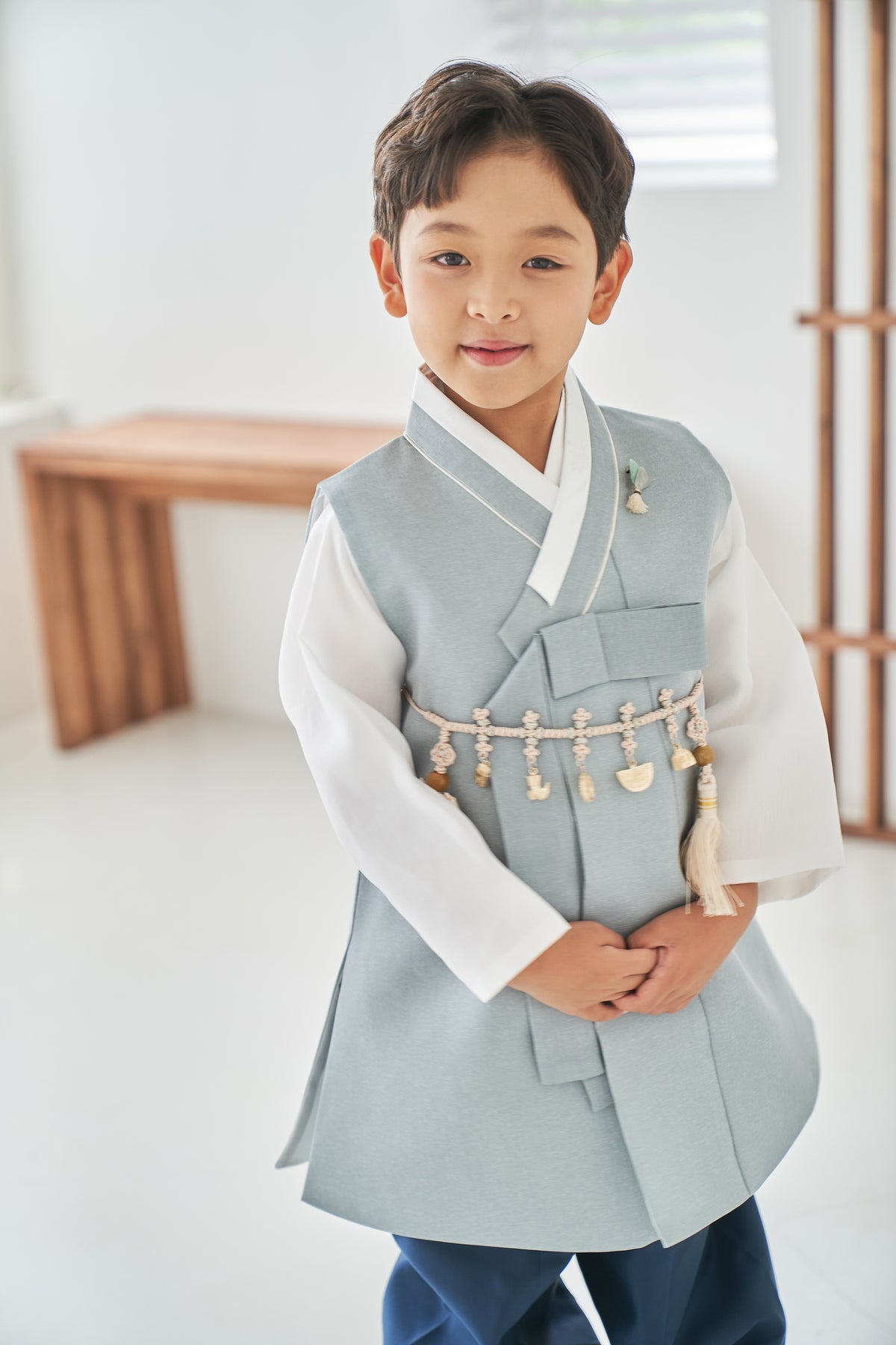 Dark Green Hanbok is traditional clothing of Korea. And the child would be dressed up the Hanbok in the first birthday.