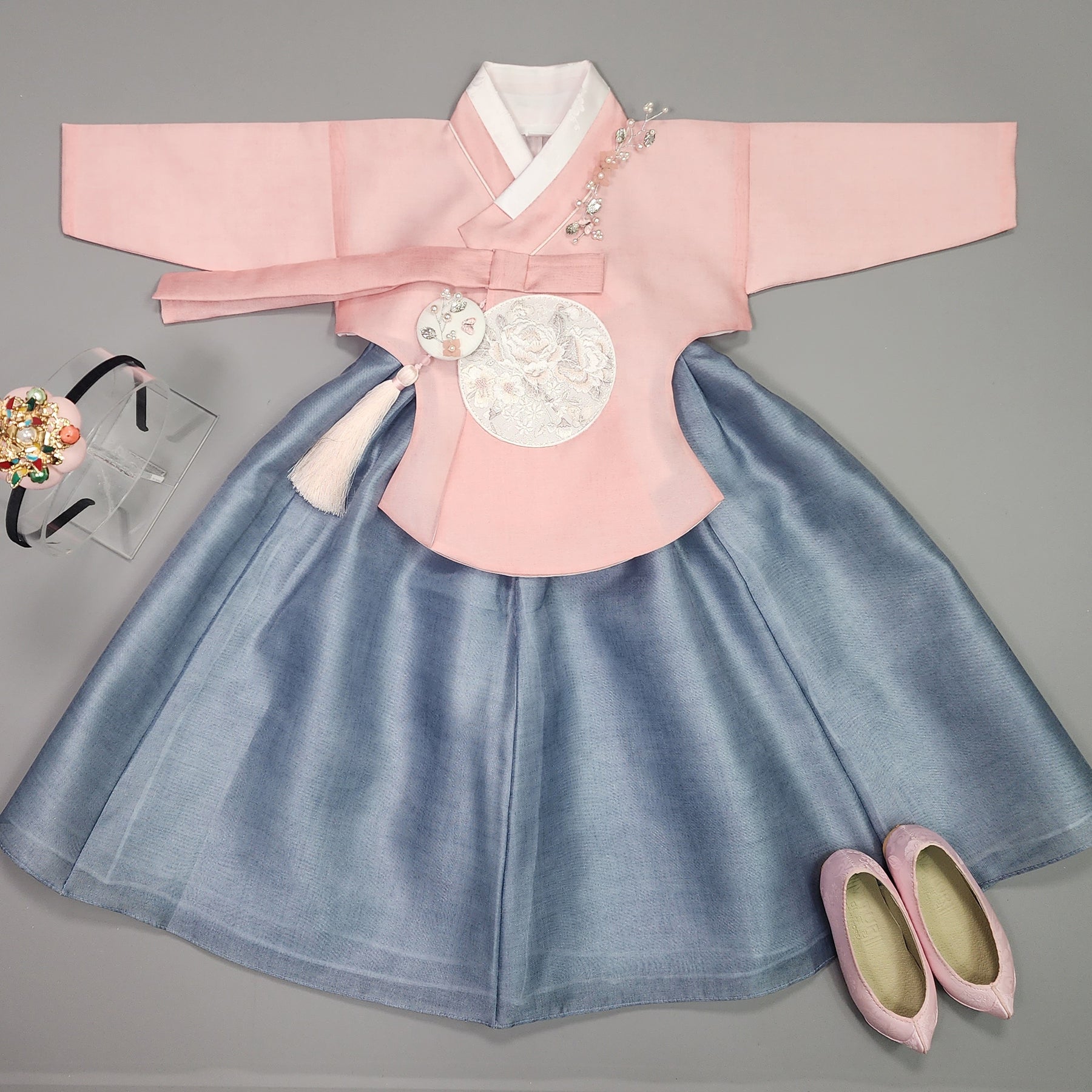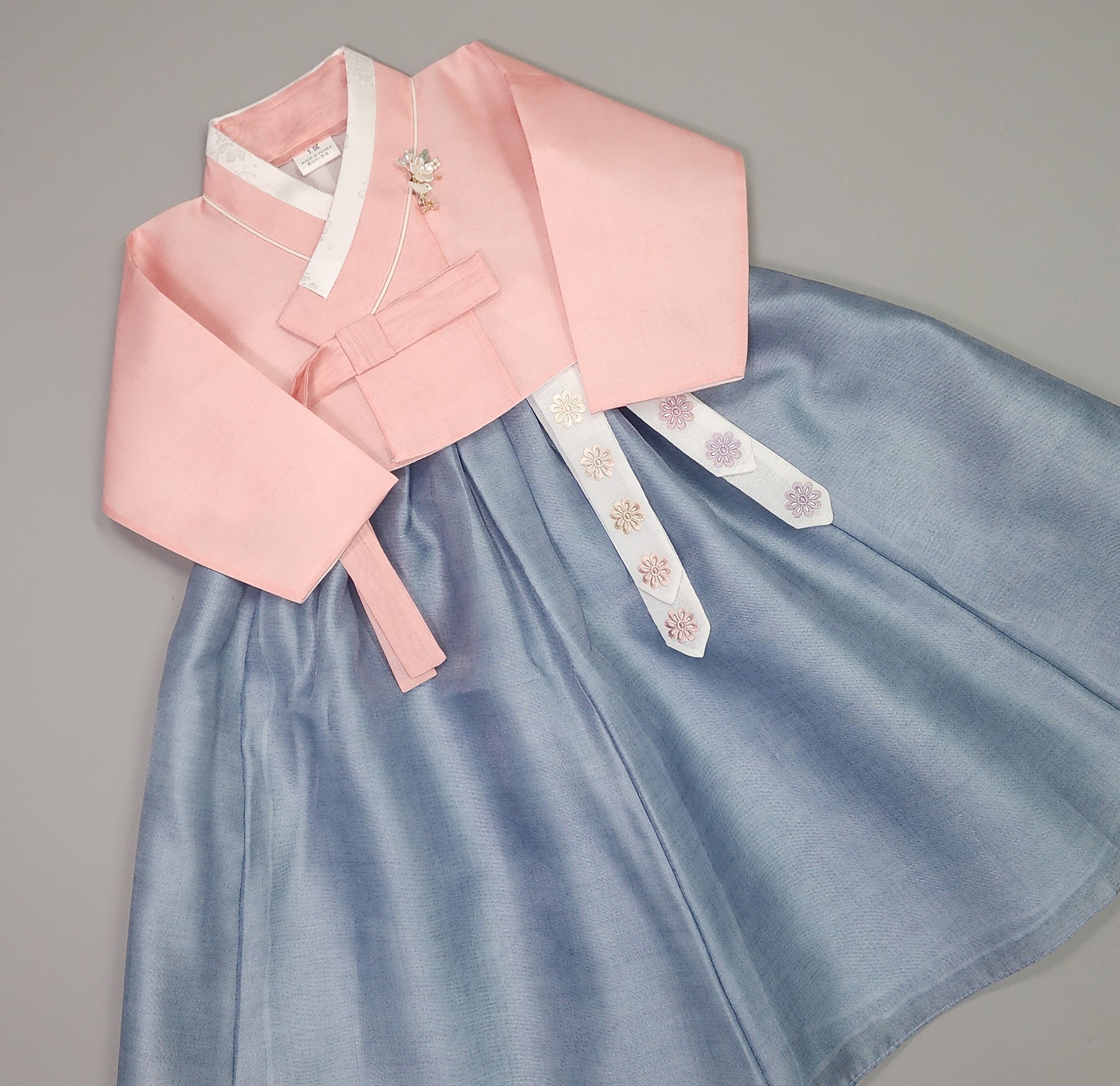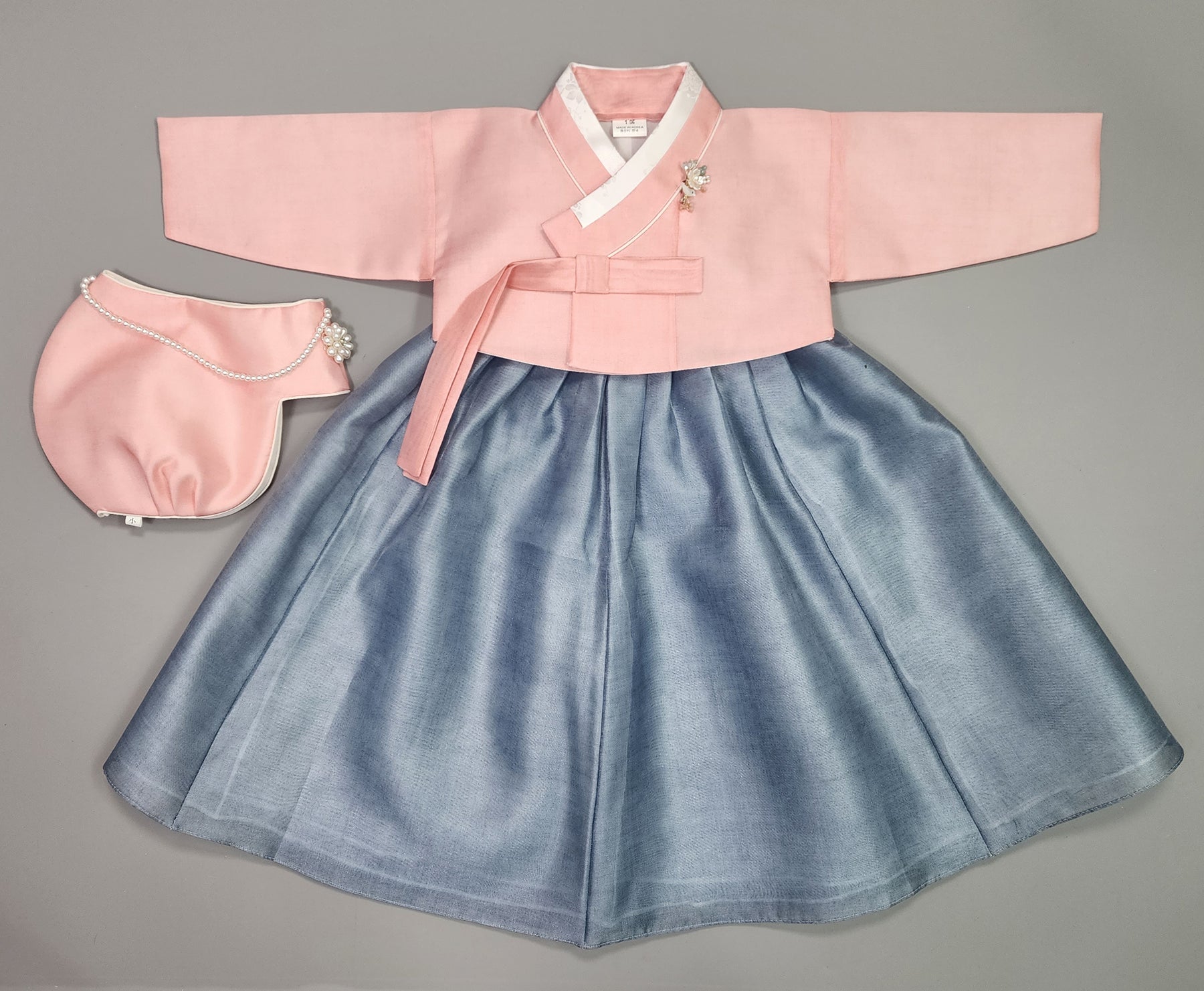 Hanbok Girl Baby Traditional Korean Clothing Set First Birthday (Dol) & 100th Day Celebration Ages 1–15 | Blue & Pink | HG110