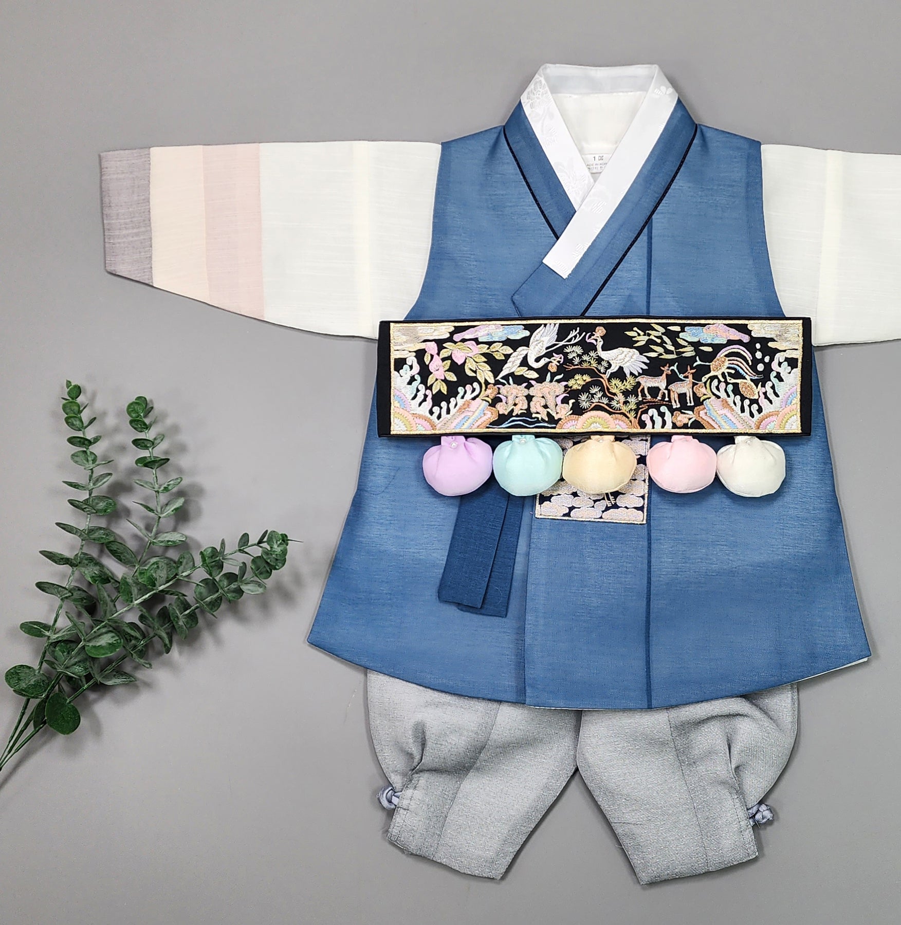 Korean Traditional Boy Baby Hanbok Dol Baikil Party Celebration 100th-15 Ages Blue JYB107