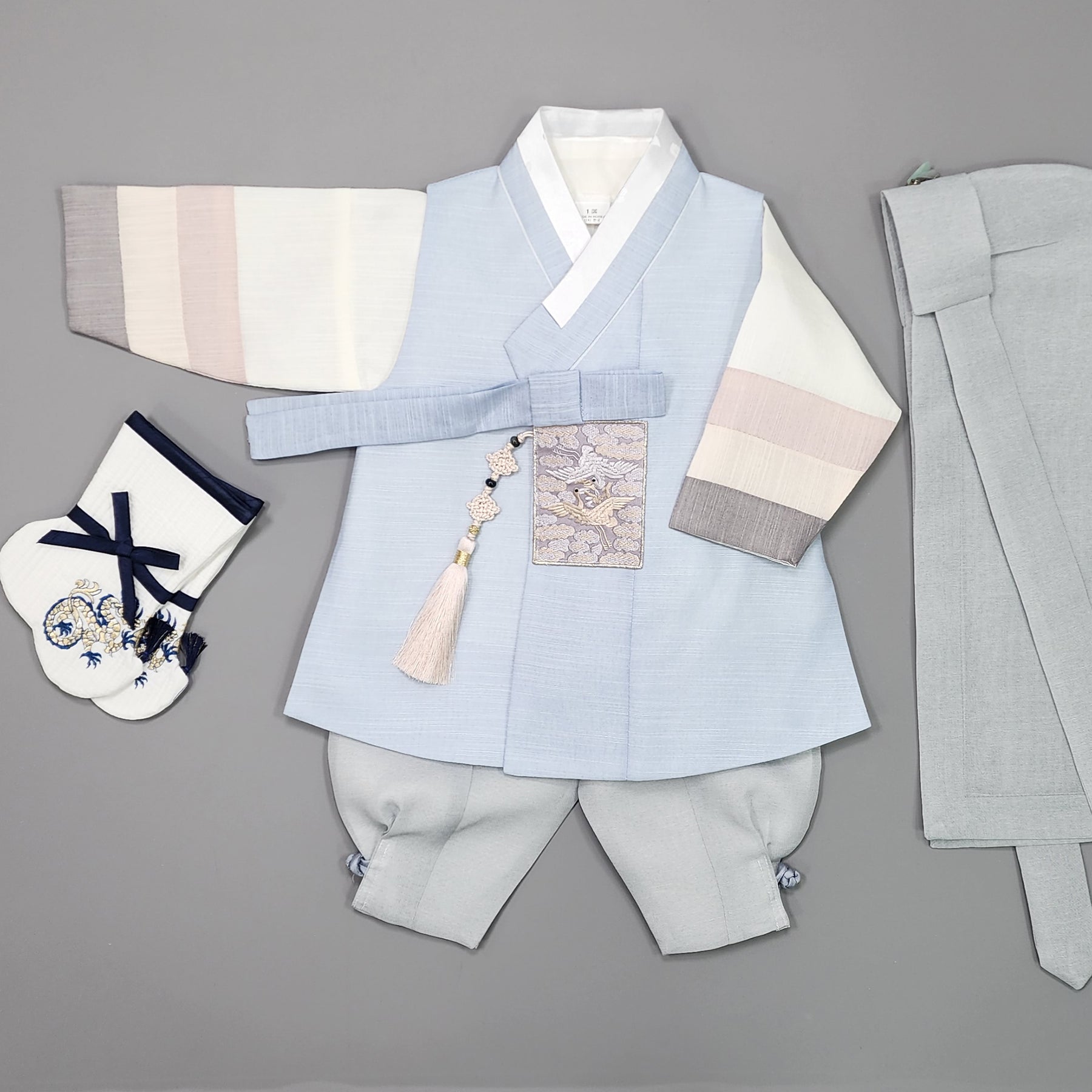 This hanbok includes top jacket / inner top / pants.