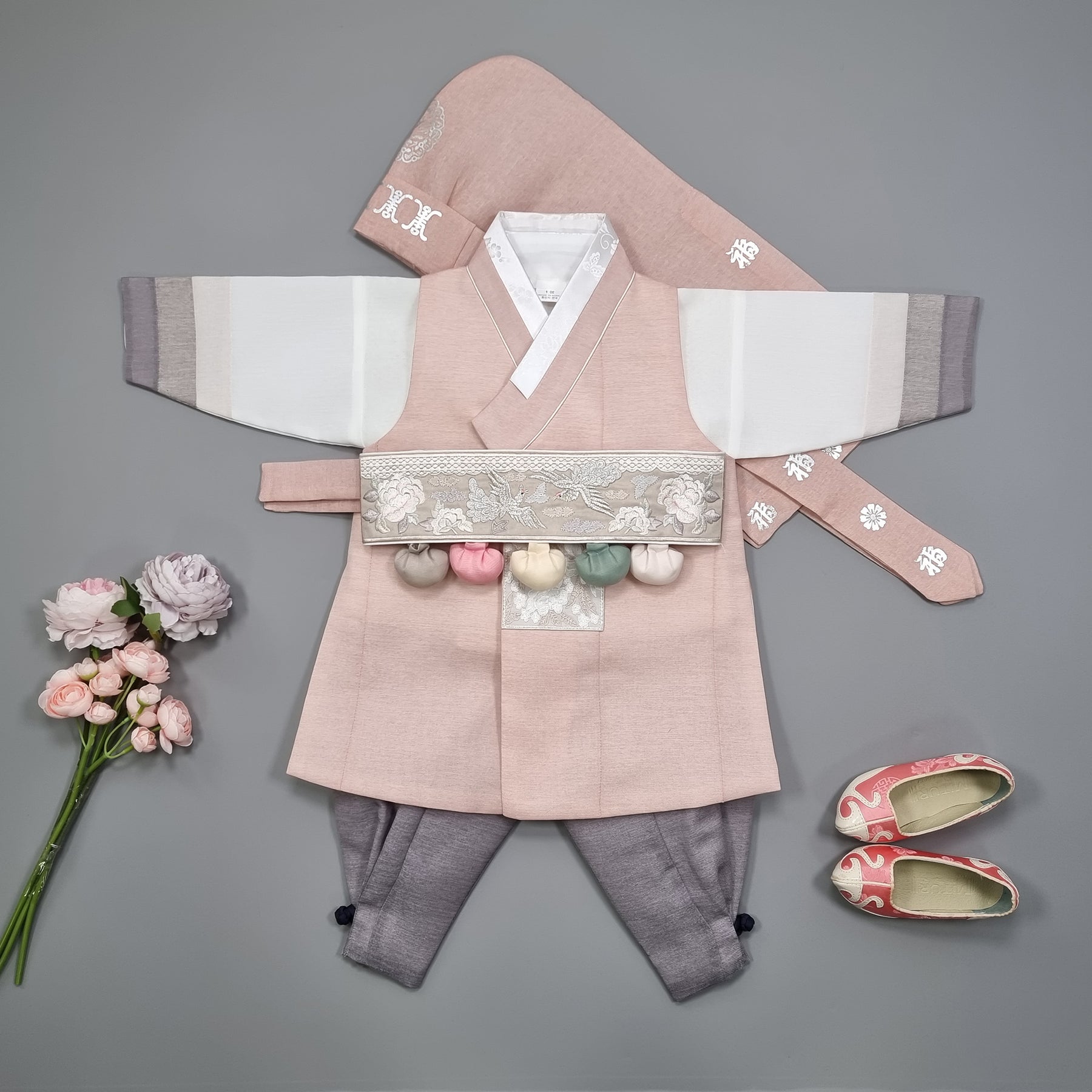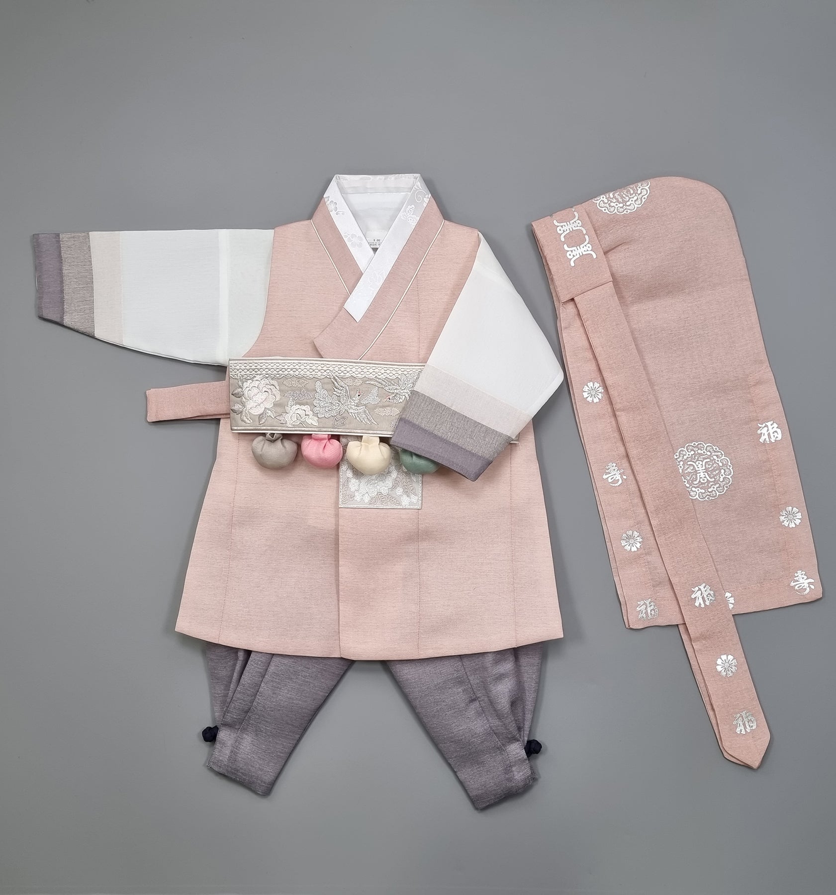 Korean Traditional Boy Baby Hanbok Dol Baikil Party Celebration 100th Days 1-15 Ages Dusty Pink 색동 HGB115