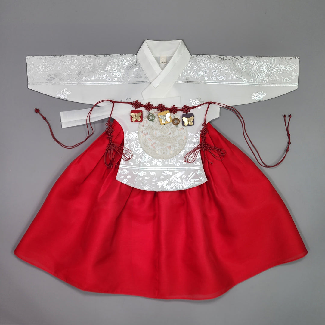 Hanbok Girl Baby Korea Traditional Clothing Set First Birthday Celebration Party 1–6 years 100th days Ivory Red Gold Print DGH122