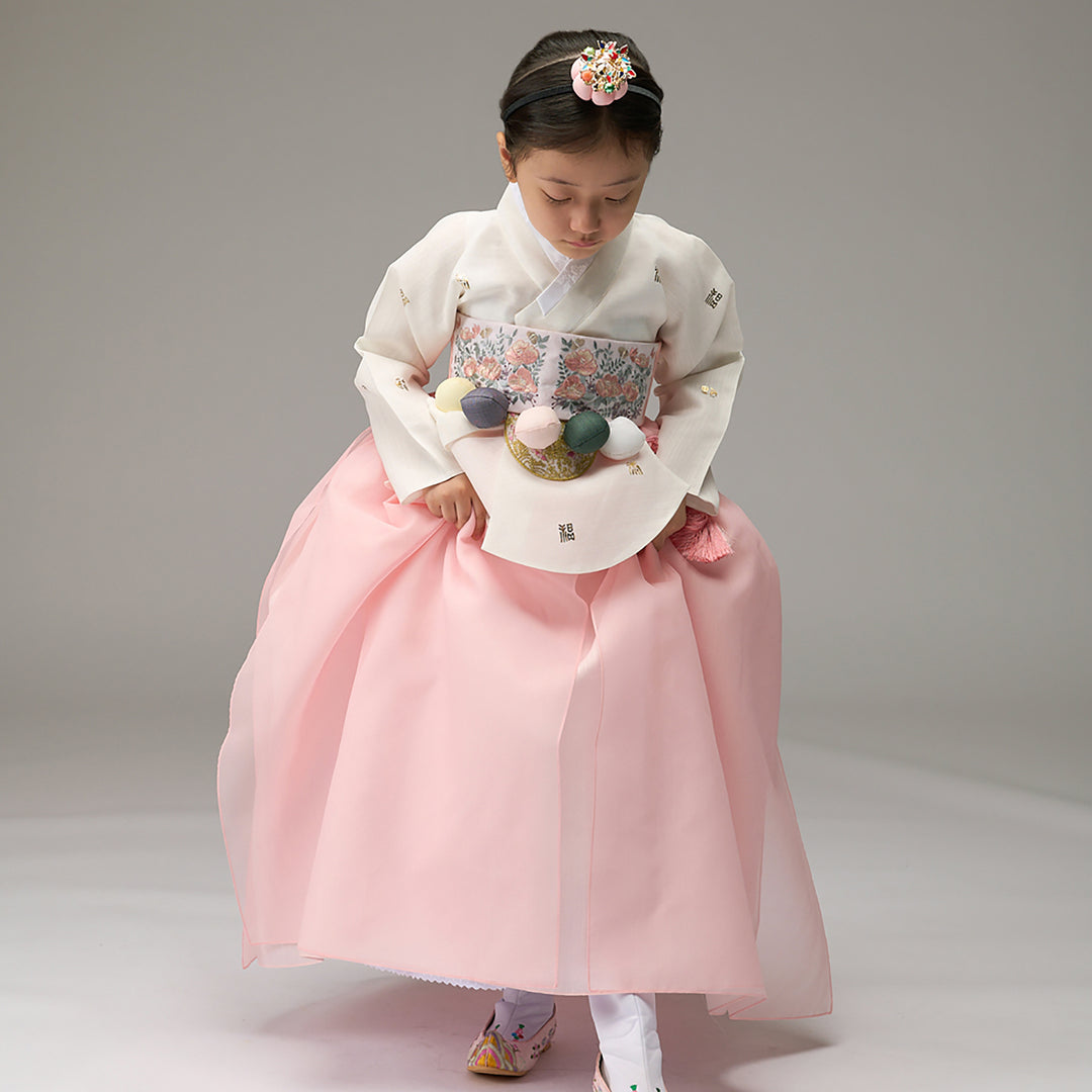 Hanbok Girl Baby Korea Traditional Clothing Set First Birthday Celebration Party 1–6 years 100th days Ivory Peach Gold Print DGH121