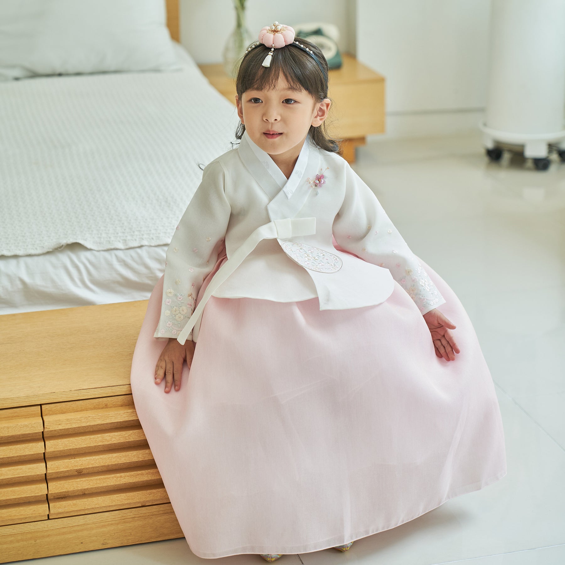 Hanbok Girl Baby Traditional Korean Clothing Set First Birthday (Dol) & 100th Day Celebration Ages 1–10 | Ivory & Light Pink
