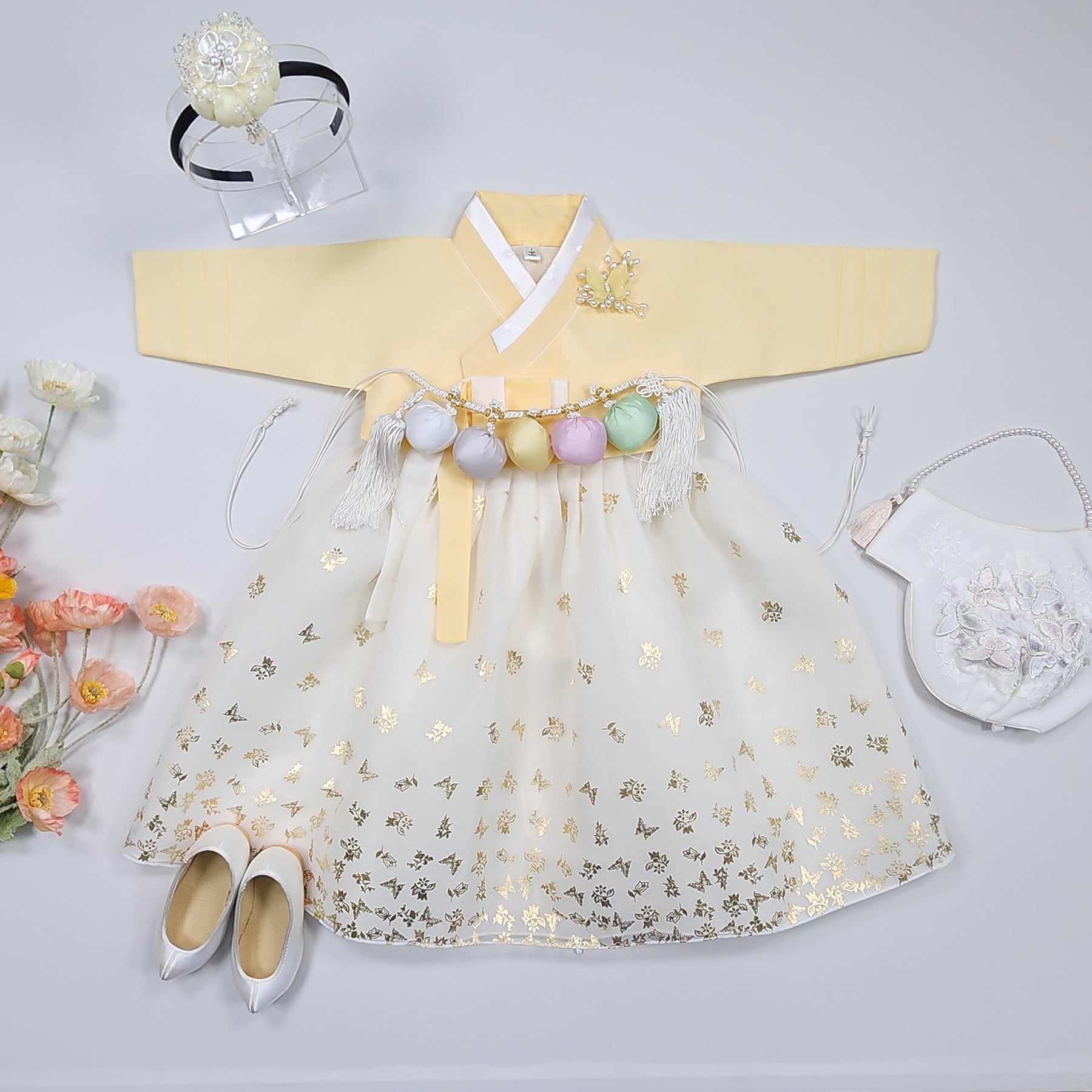 Hanbok Girl Baby Korea Traditional Clothing Set First Birthday Celebration Party 1–10 years 100th days Butterfly Gold Print DGH126