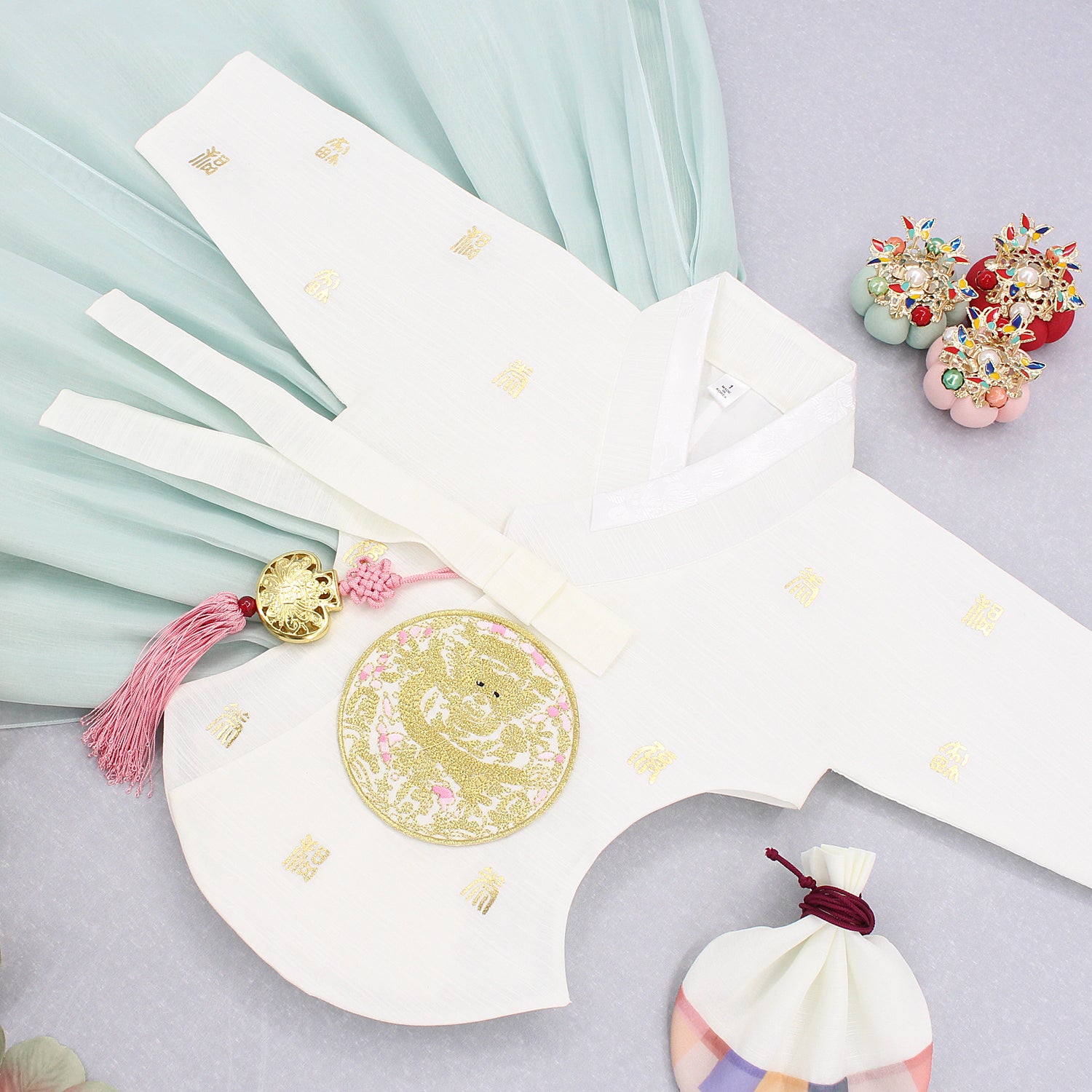 Hanbok is traditional clothing of Korea. And the child would be dressed up in the Hanbok on the first birthday.
