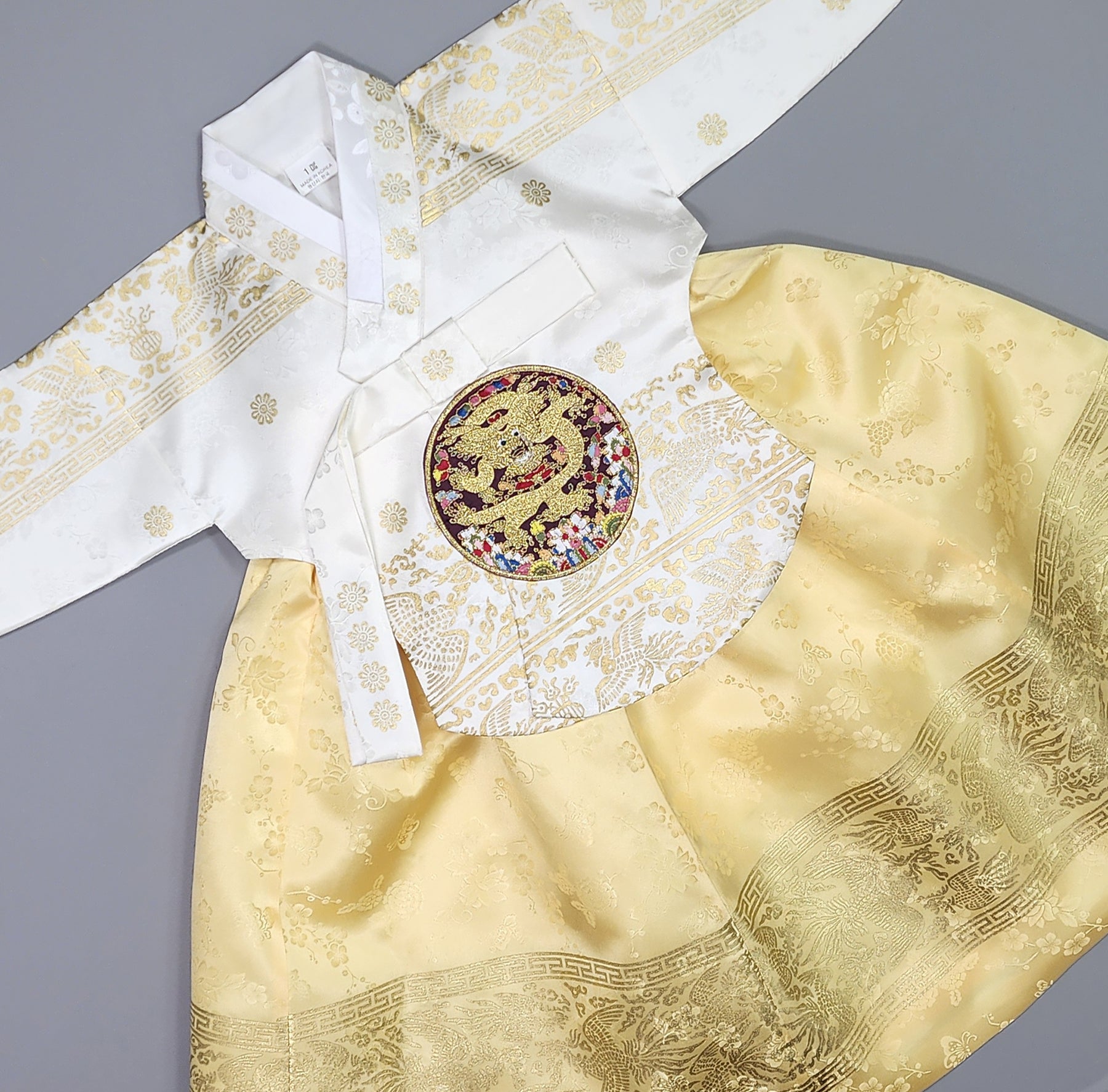 Hanbok Girl Baby Korea Traditional Clothing Set First Birthday Celebration Party Celebration 1–10 Years White Gold Print HG120