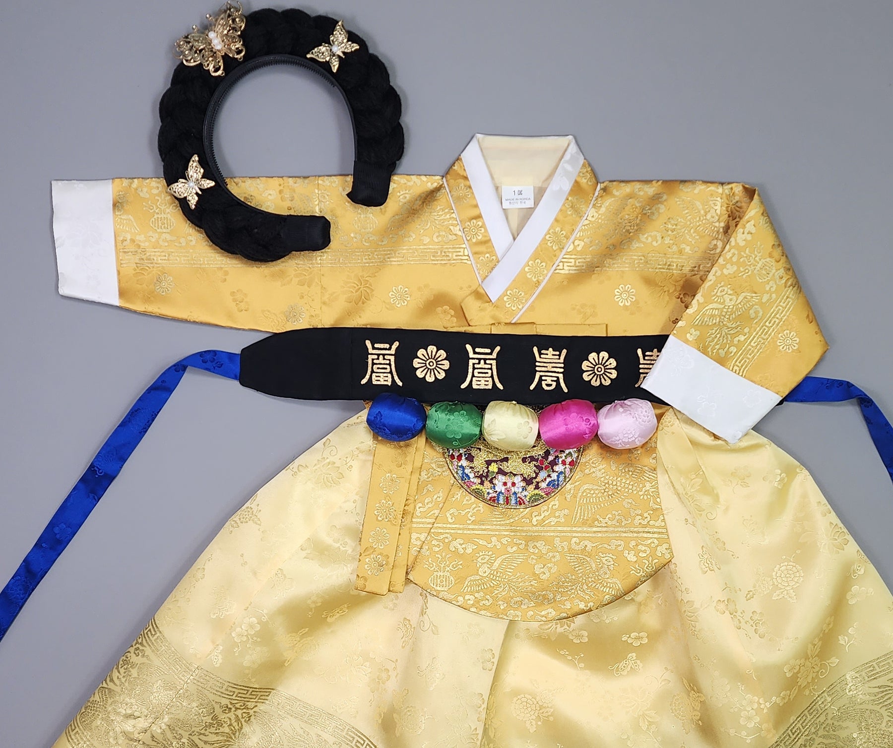 Hanbok Girl Baby Korea Traditional Clothing Set First Birthday Celebration Party Celebration 1–10 Years Gold Print HG117