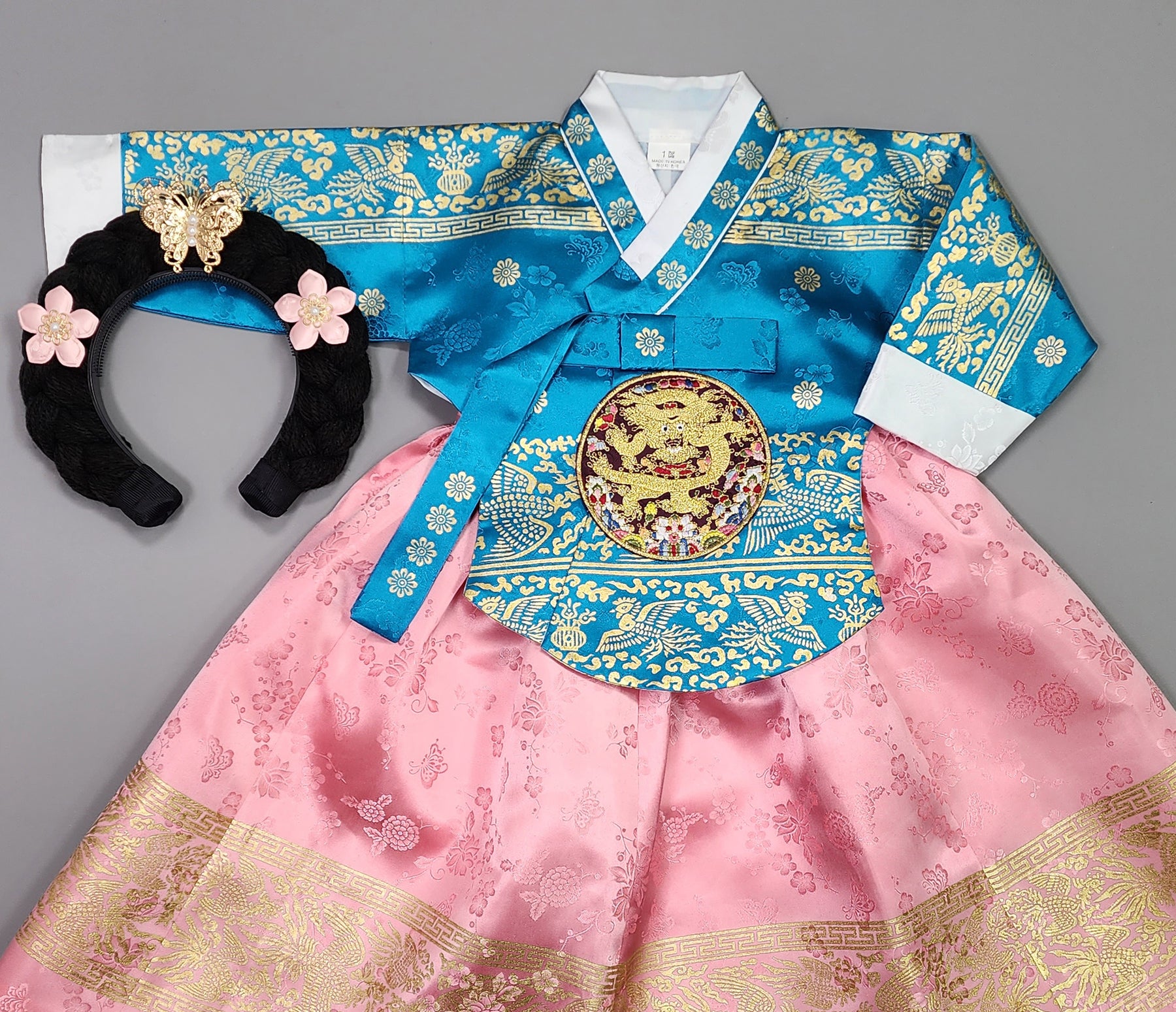 Hanbok Girl Baby Korea Traditional Clothing Set First Birthday Celebration Party Celebration 1–10 Years Blue Pink Skirt Gold Print HG127