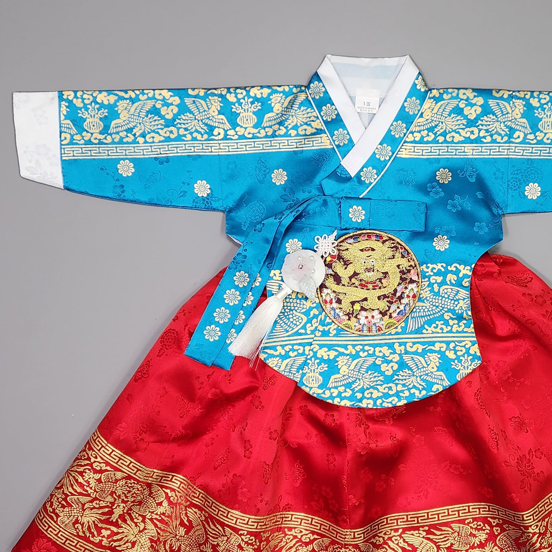 Hanbok Girl Baby Korea Traditional Clothing Set First Birthday Celebration Party Celebration 1–10 Years Blue Red Skirt Gold Print HG131