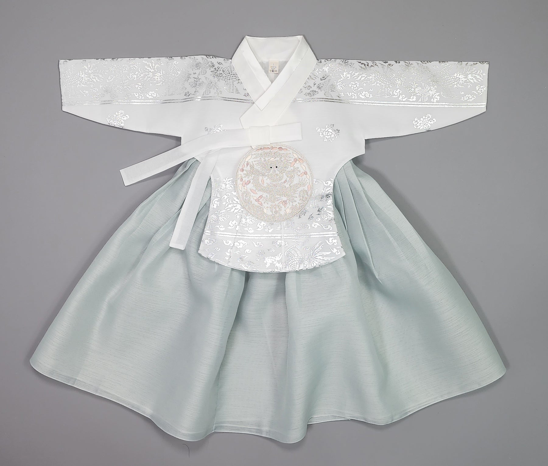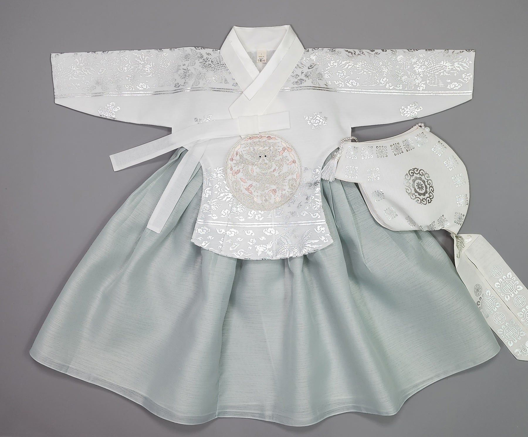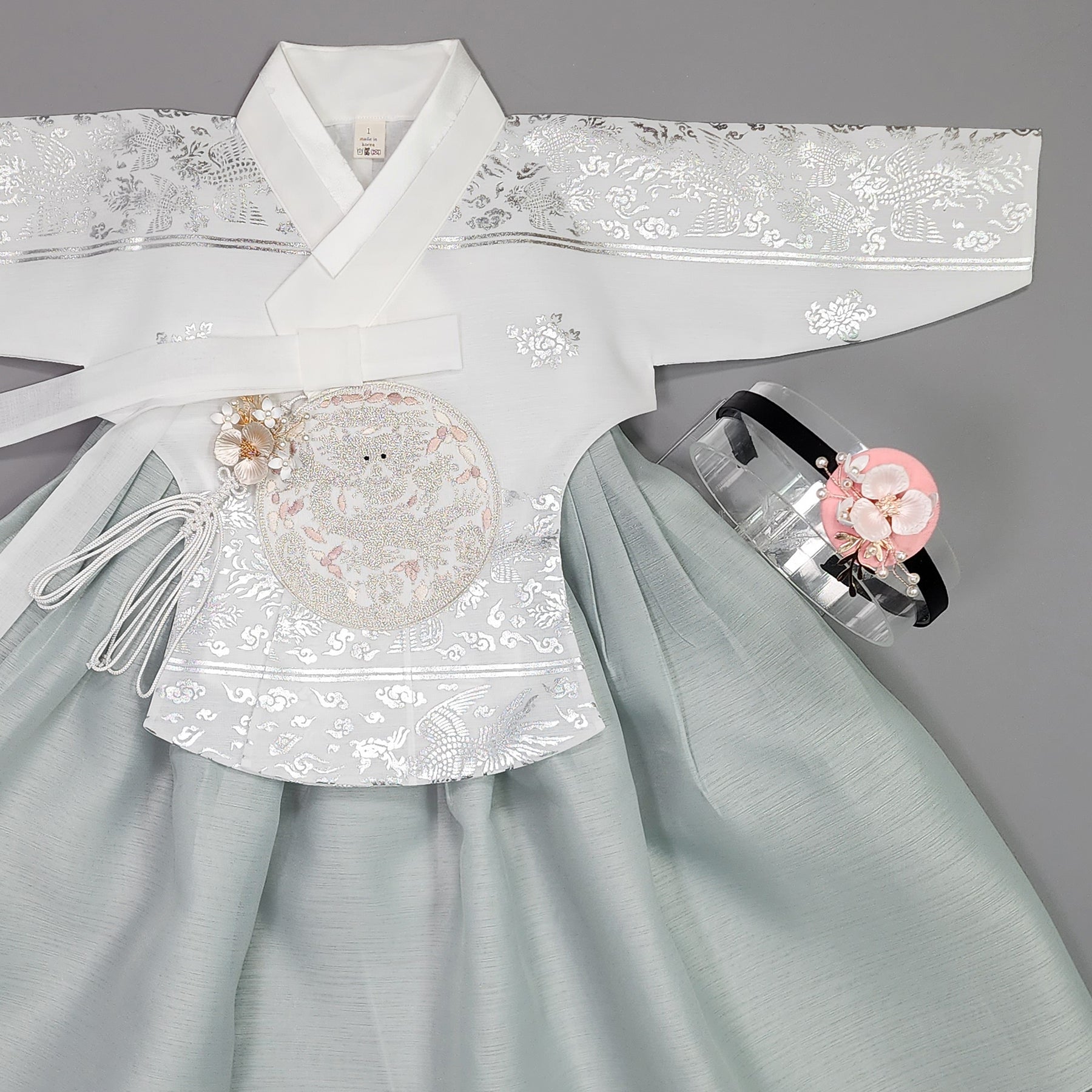 Hanbok Girl Baby Korea Traditional Clothing Set First Birthday Celebration Party Celebration 1–15 years White Mint Silver Print OSG327
