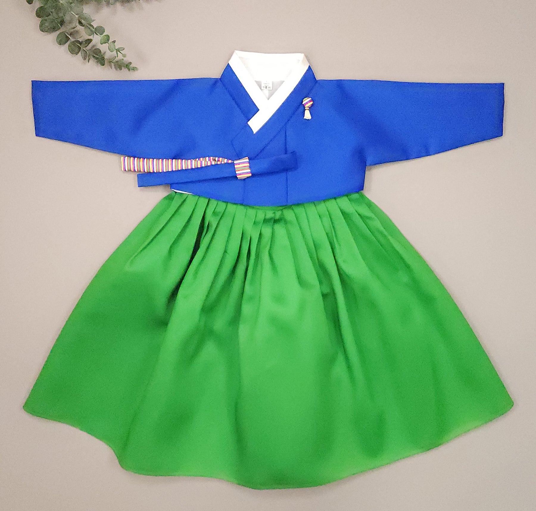Dark Green Hanbok is traditional clothing of Korea. And the child would be dressed up the Hanbok in the first birthday.