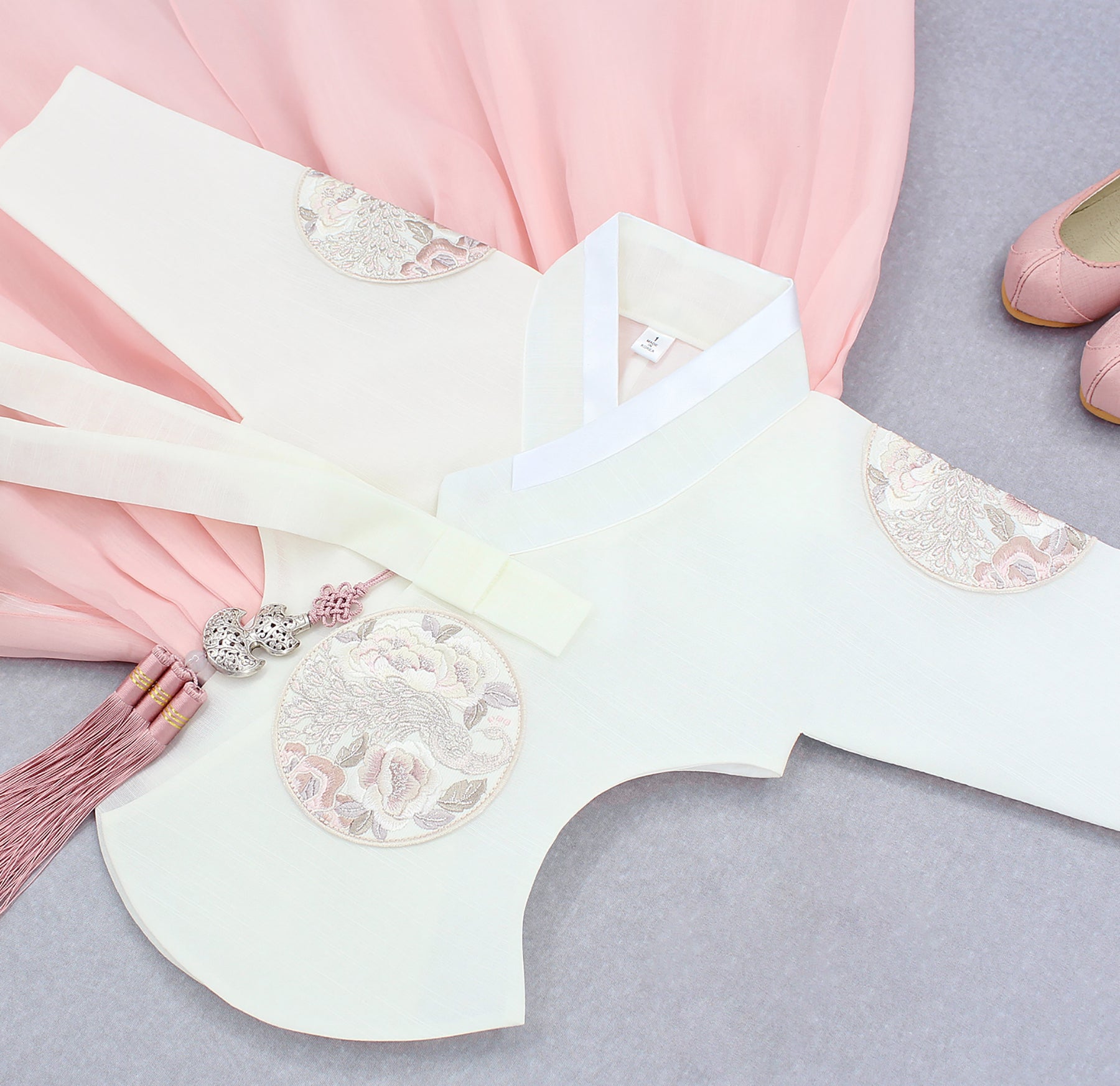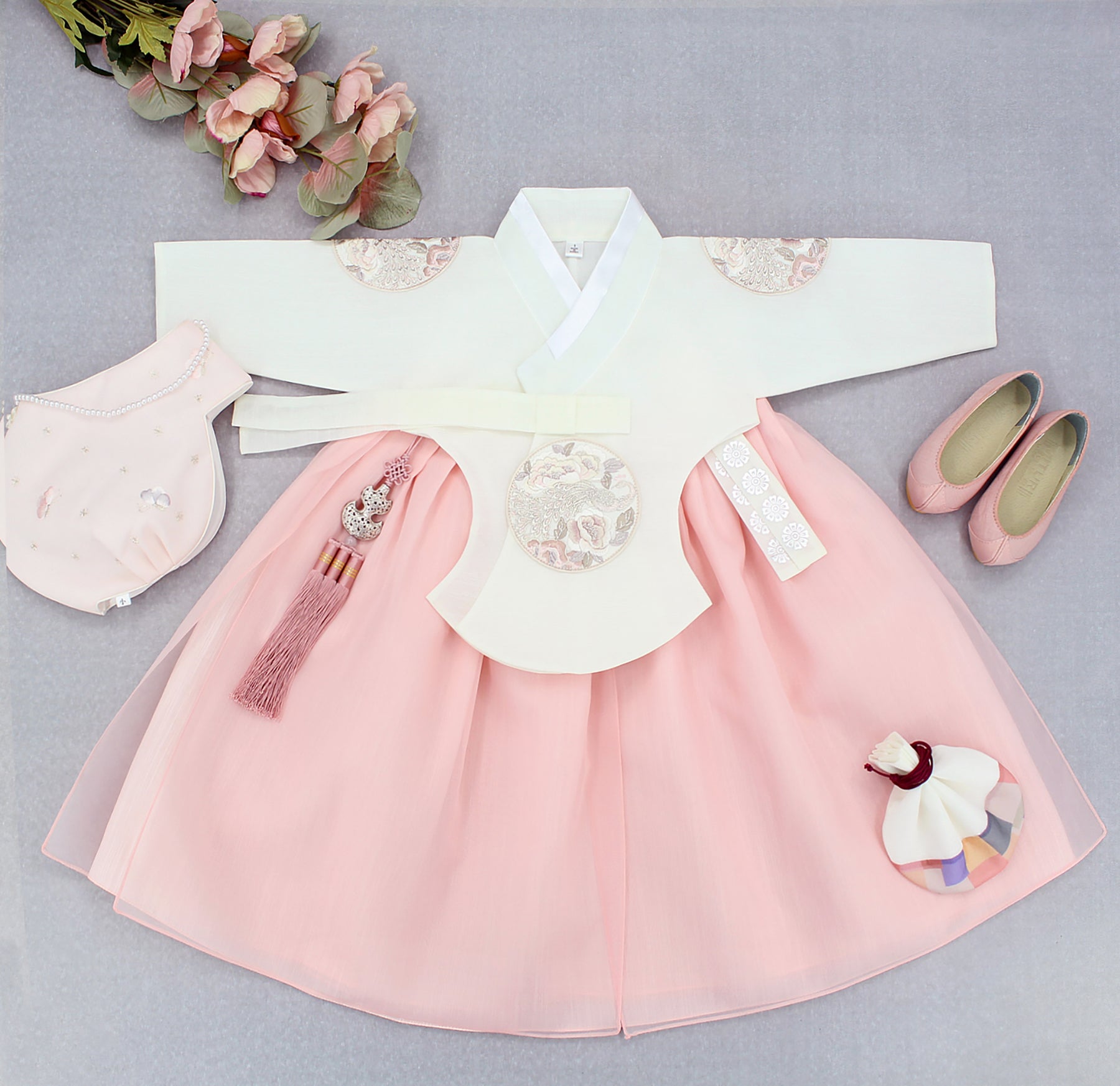 Hanbok Girl Baby Korea Traditional Clothing Set First Birthday Celebration Party Celebration 1–8 years Ivory Peach DGH103