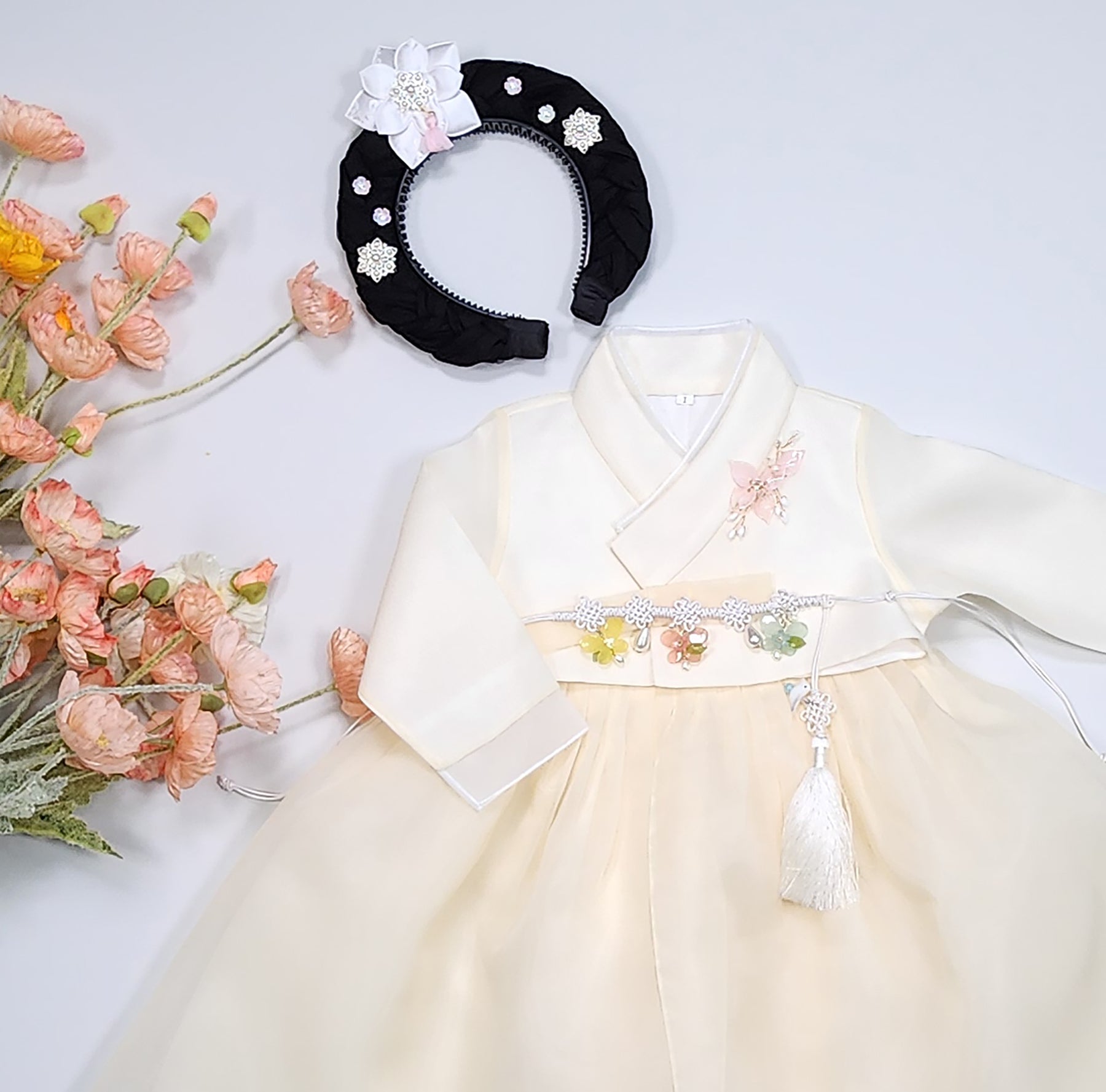 Hanbok Girl Baby Traditional Korean Clothing Set First Birthday (Dol) Celebration Ages 1–8 | Pastel Beige | OSG103