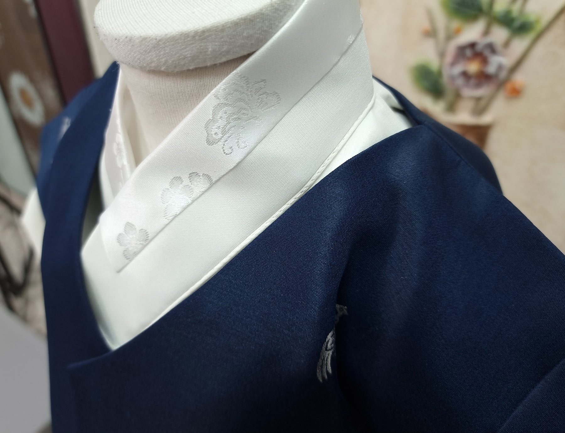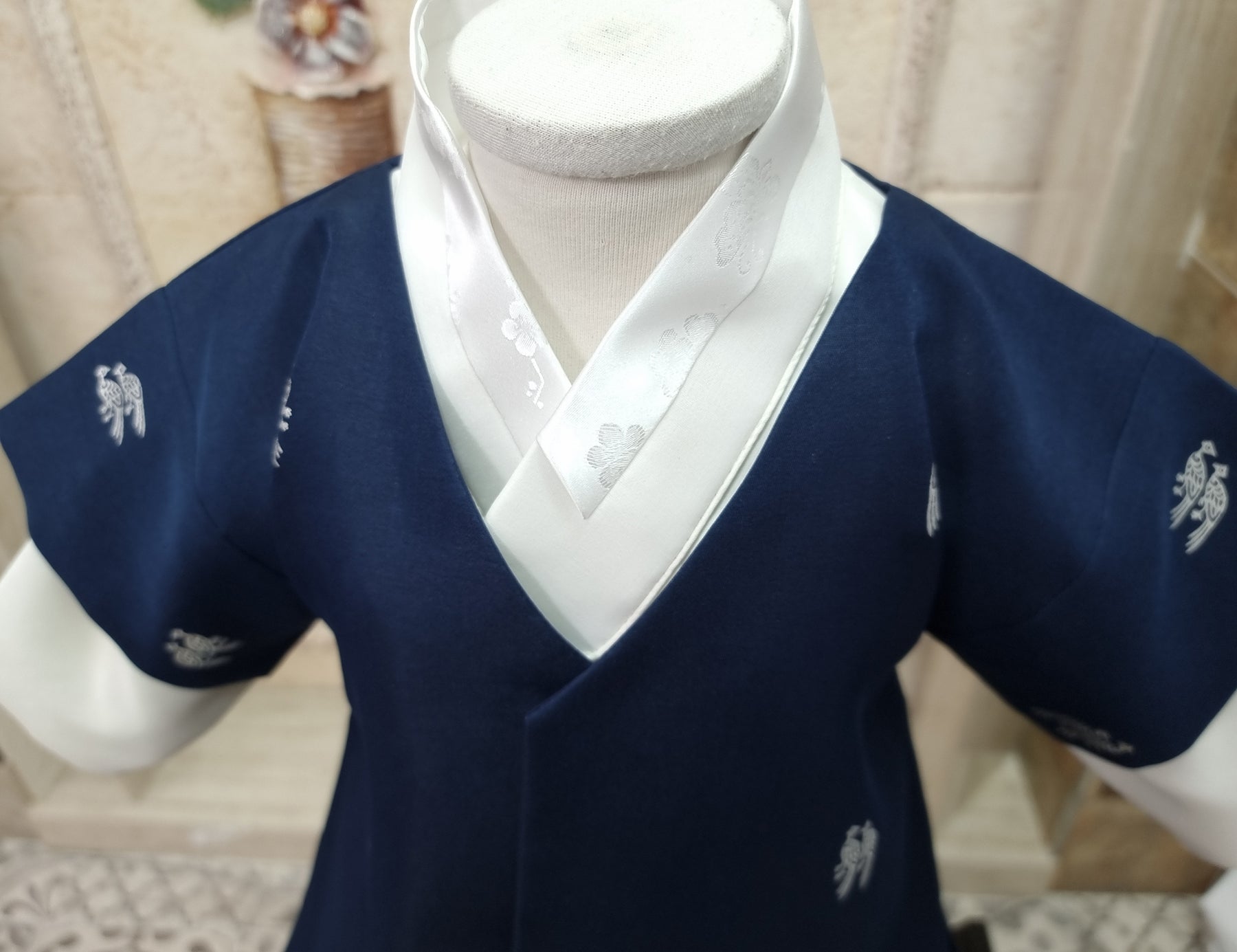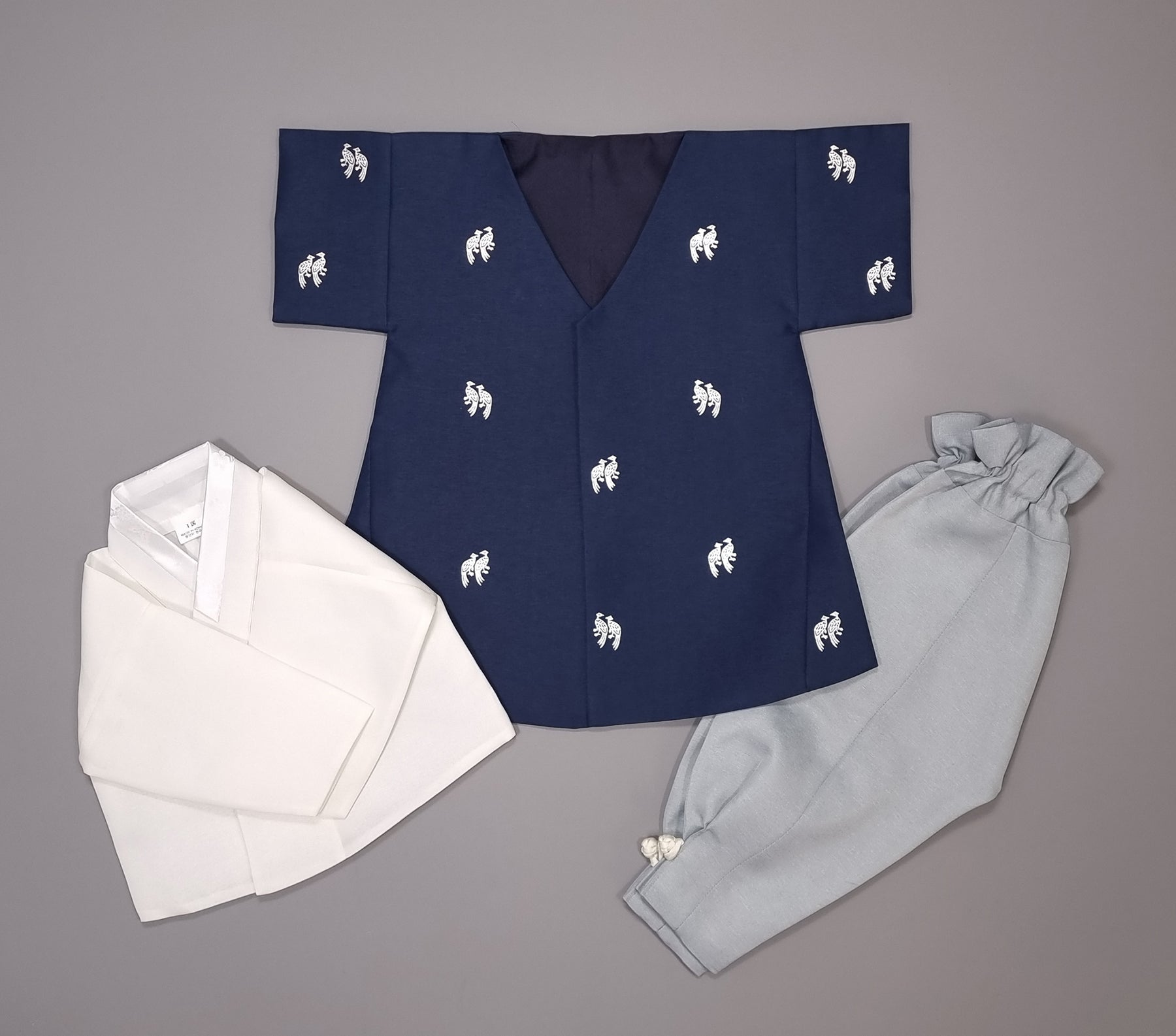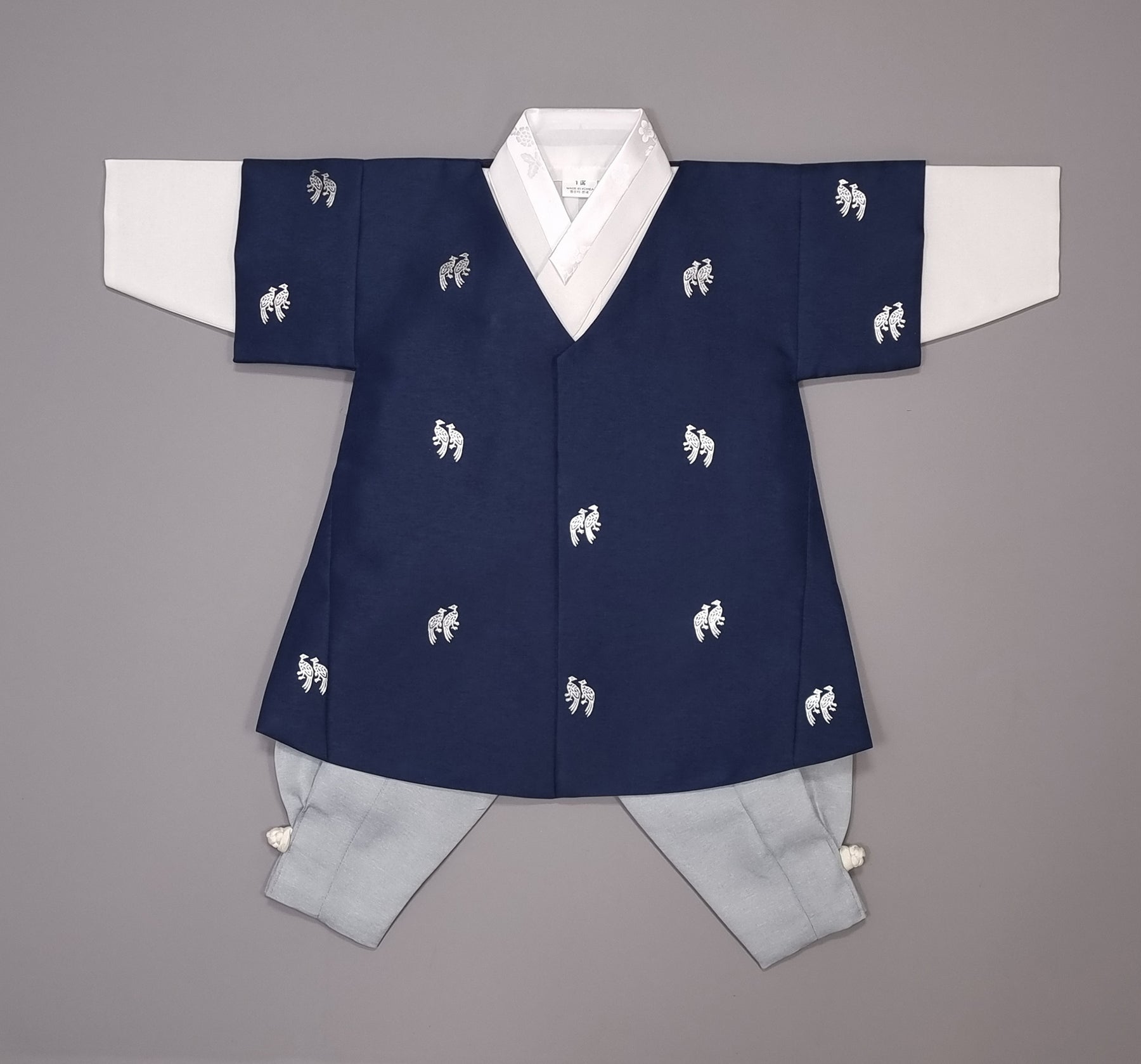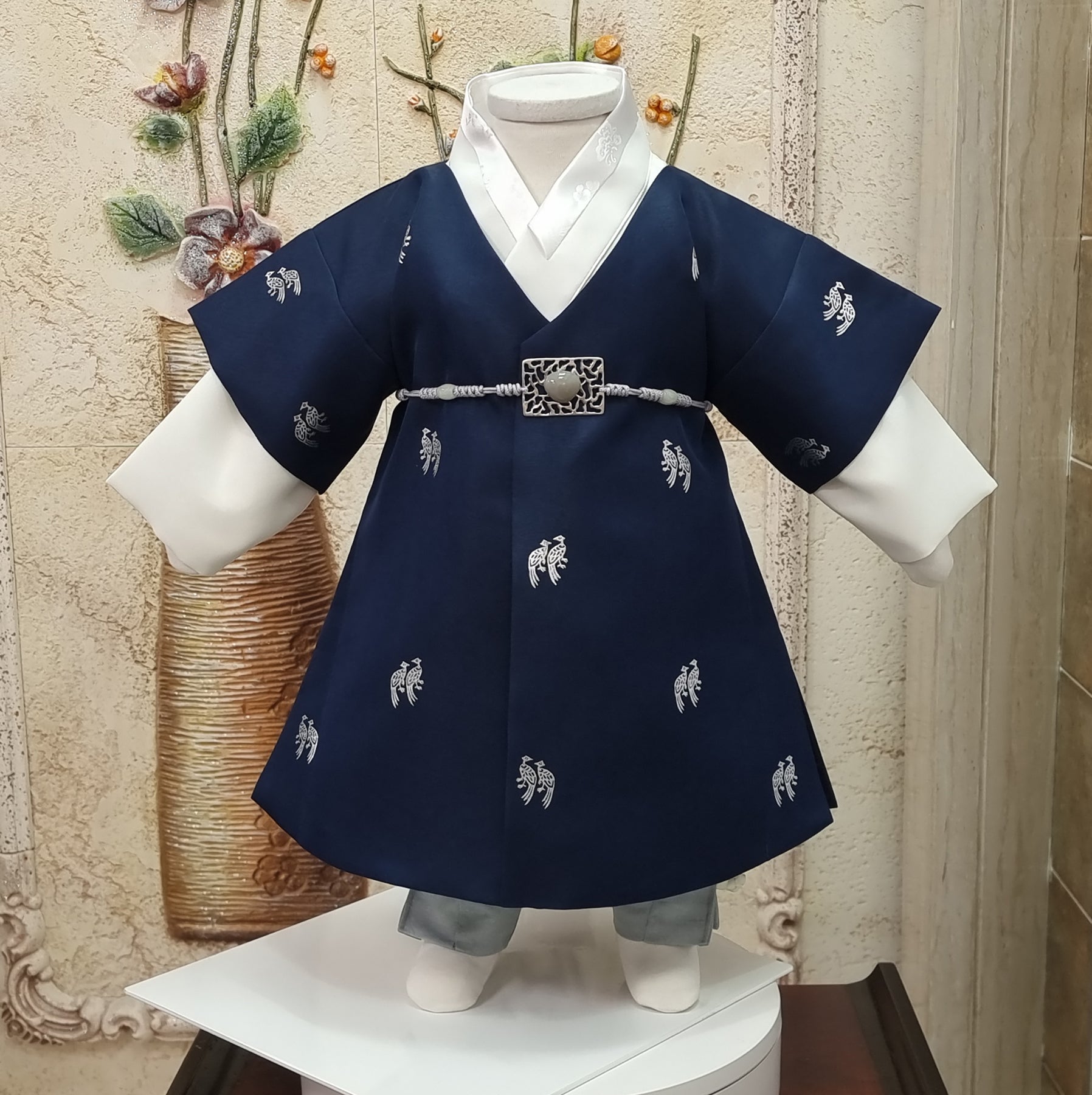 Korean Traditional Boy Baby Hanbok Dol Baikil Party Celebration 100th-10 Ages Navy Bird Silver Print HGB112
