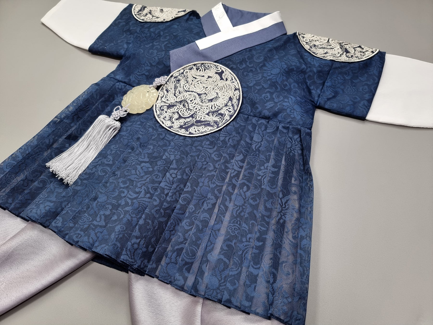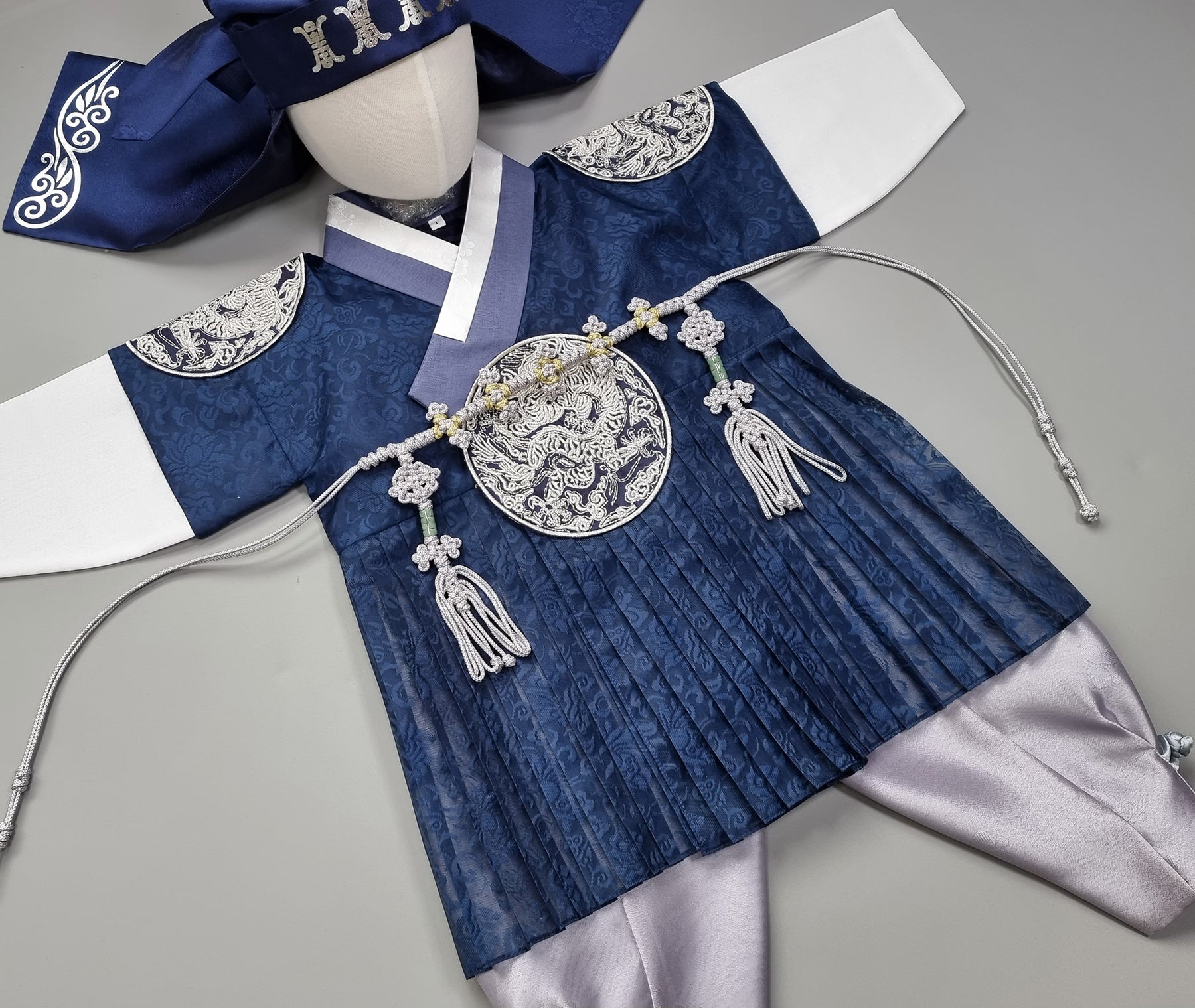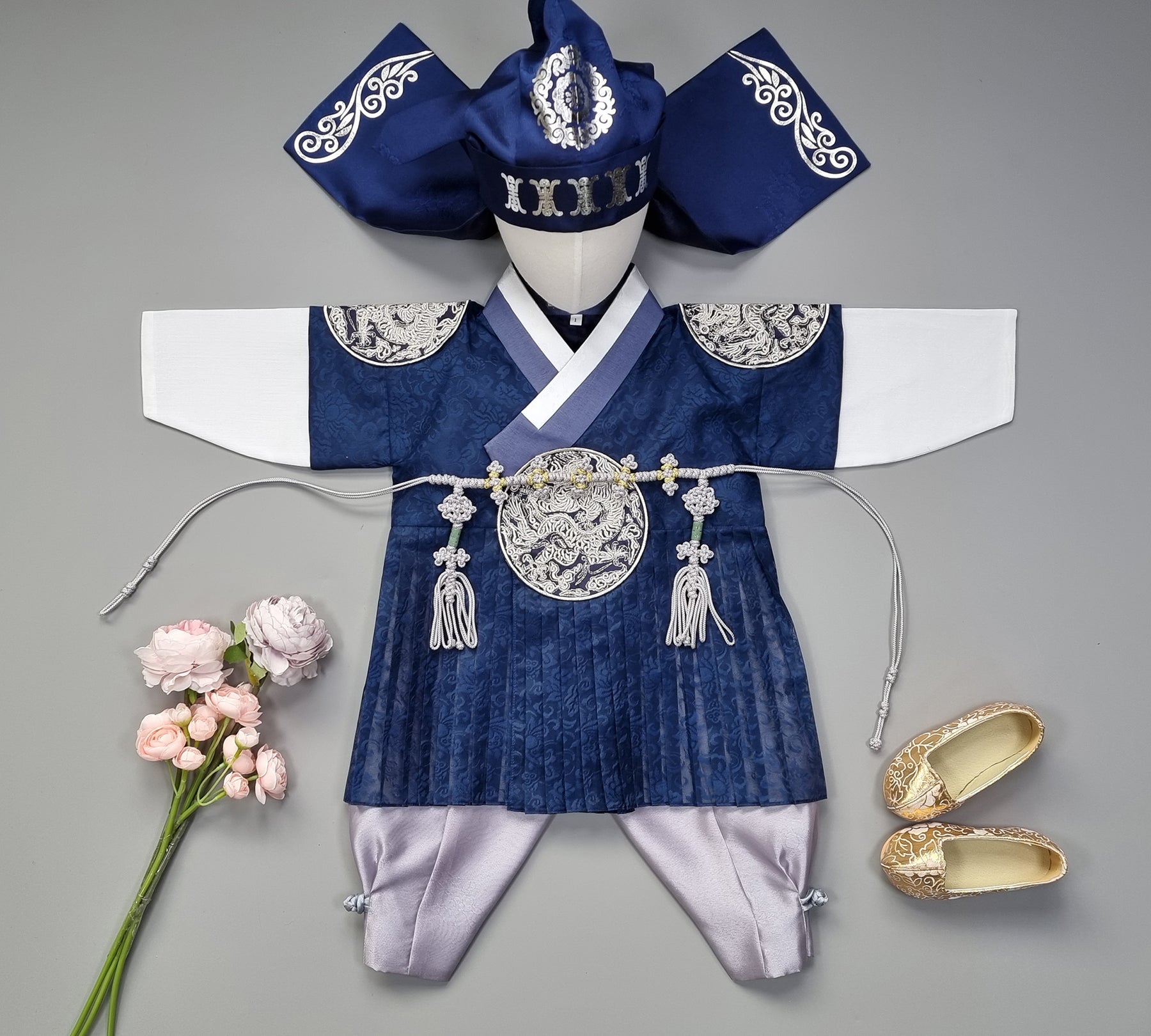 Korean Traditional Boy Baby Hanbok Dol Baikil Party Celebration 100th-10 Ages King Design Navy GHB102
