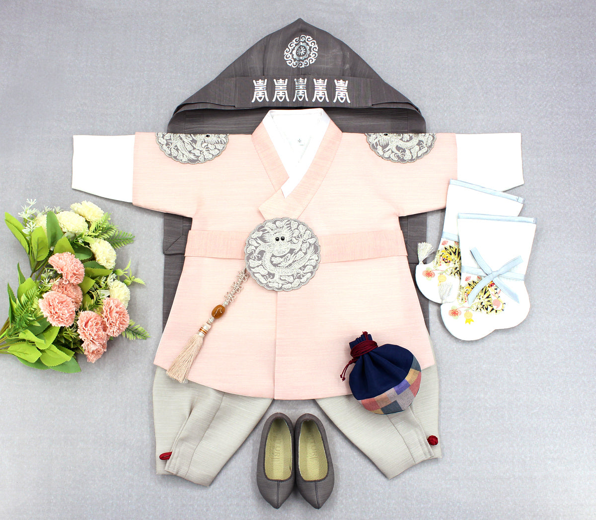 Korean Traditional Boy Baby Hanbok Dol Baikil Party Celebration 100th-10 Years Light Pink DDB107