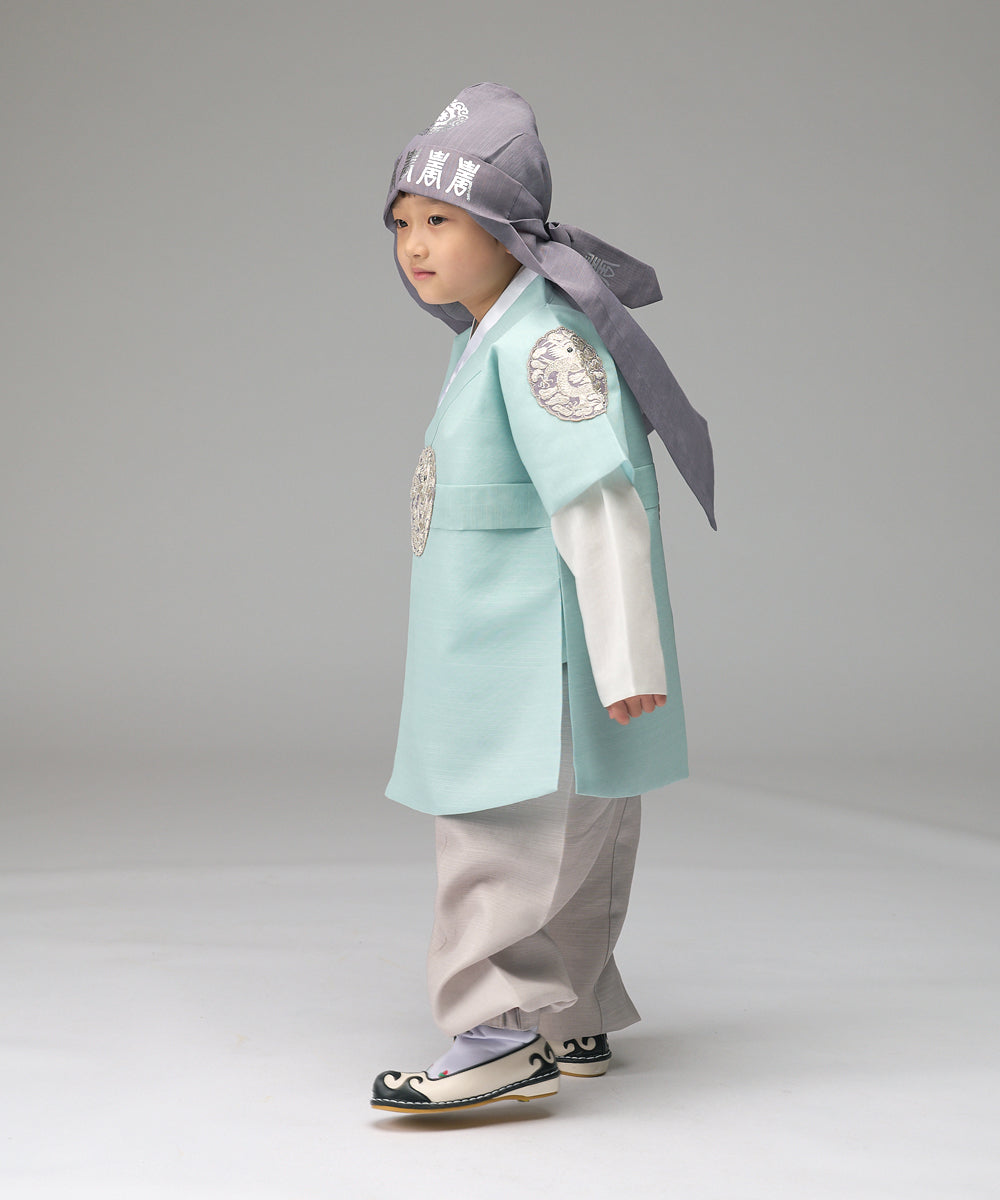 Korean Traditional Boy Baby Hanbok Dol Baikil Party Celebration 100th-10 Years Bright Mint DDB104