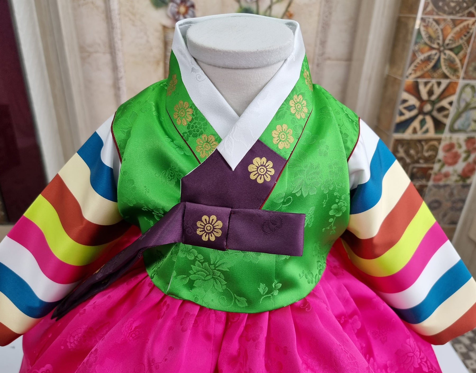 Korean Traditioanl Baby Girl Hanbok Clothing 1 Age Dol Party Celebration Green Pink