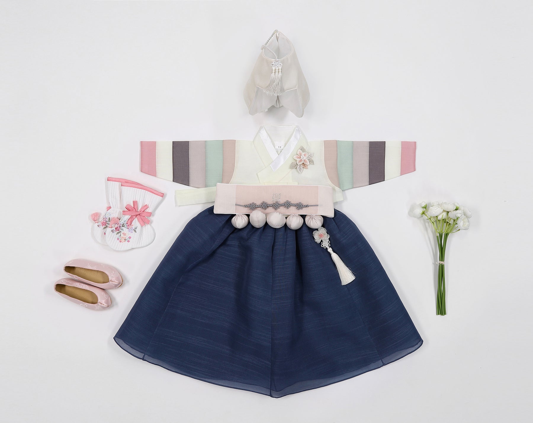Korean Traditioanl Baby Girl Hanbok Clothing 100th Birth 1 Age Dol Party Celebration Ivory Navy