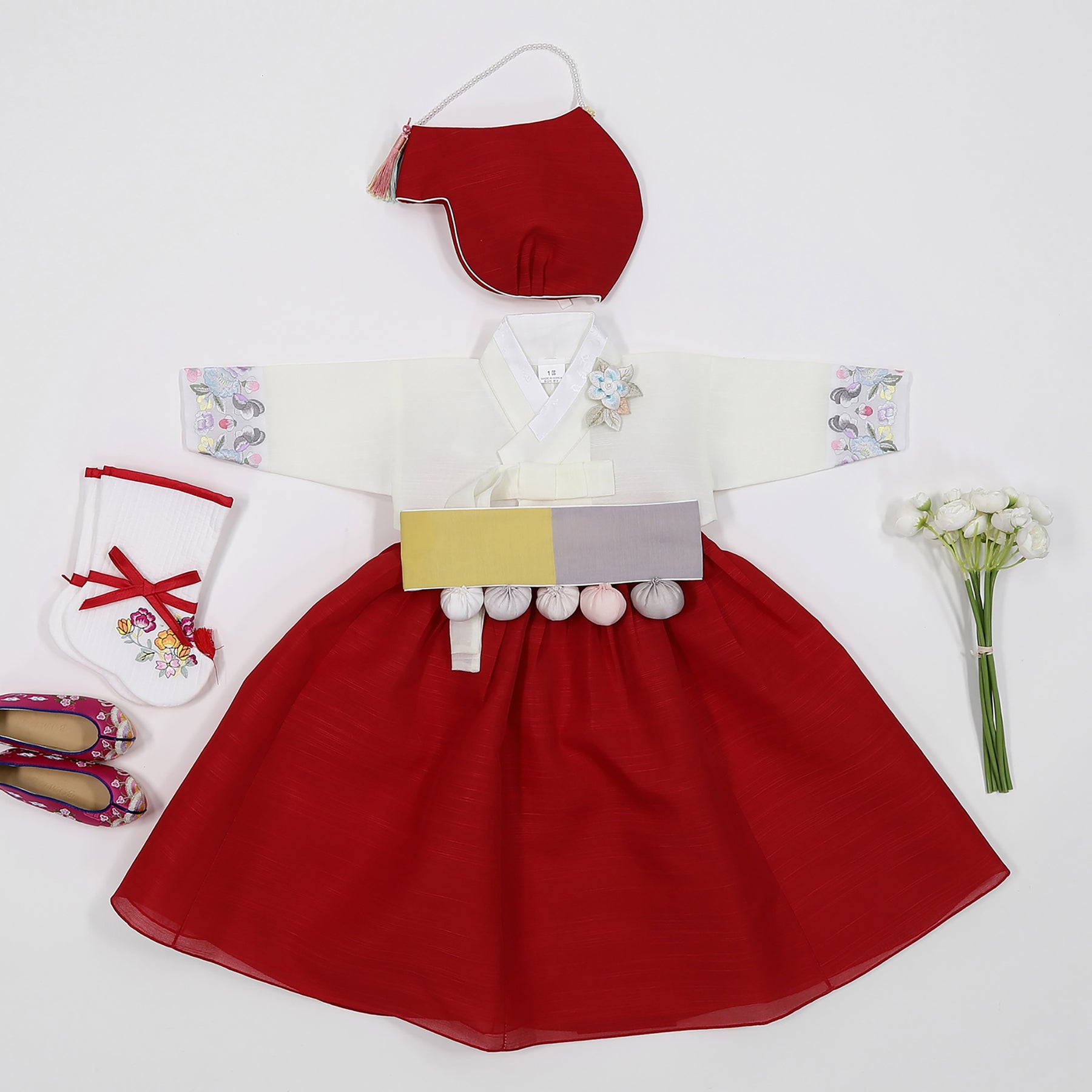 Korean Traditioanl Baby Girl Hanbok Clothing 100th Birth 1 Age Dol Party Celebration Ivory Red