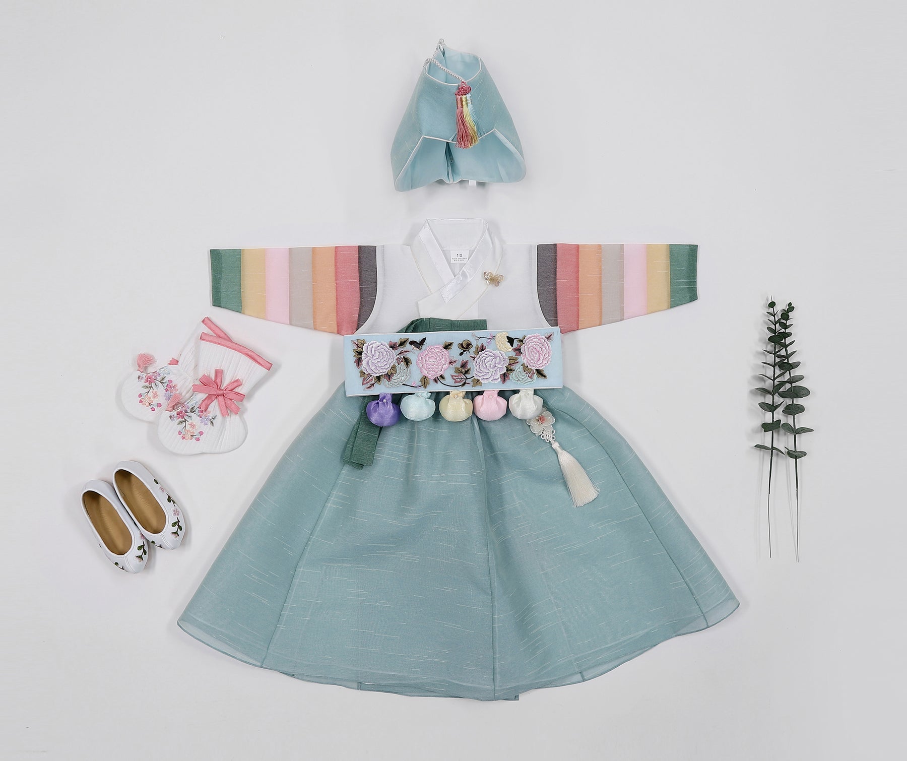 Korean Traditional Baby Girl Hanbok Clothing 1 Age Dol Party Celebration pastel Blue Saekdong
