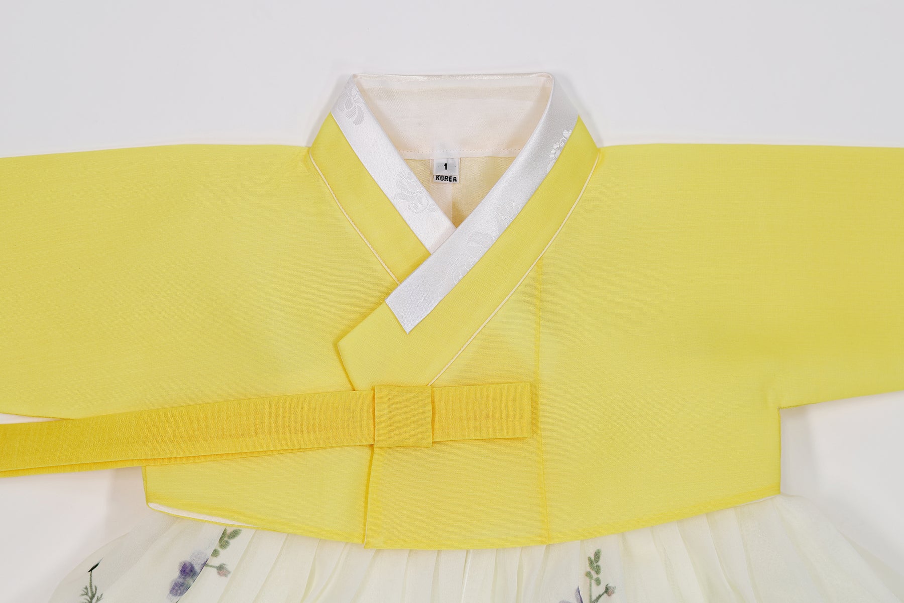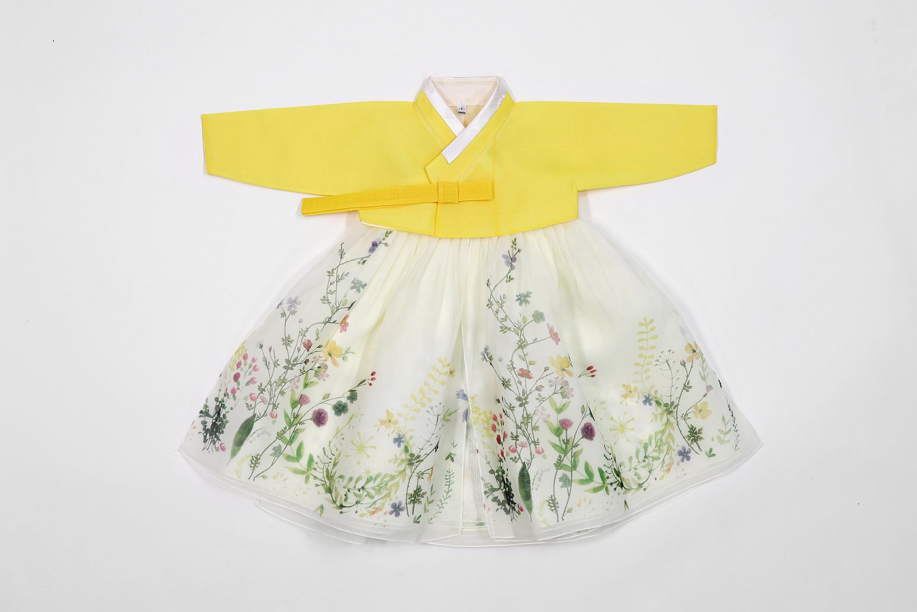 Korean Traditioanl Baby Girl Hanbok Clothing 1 Age Dol Party Celebration Yellow Flower