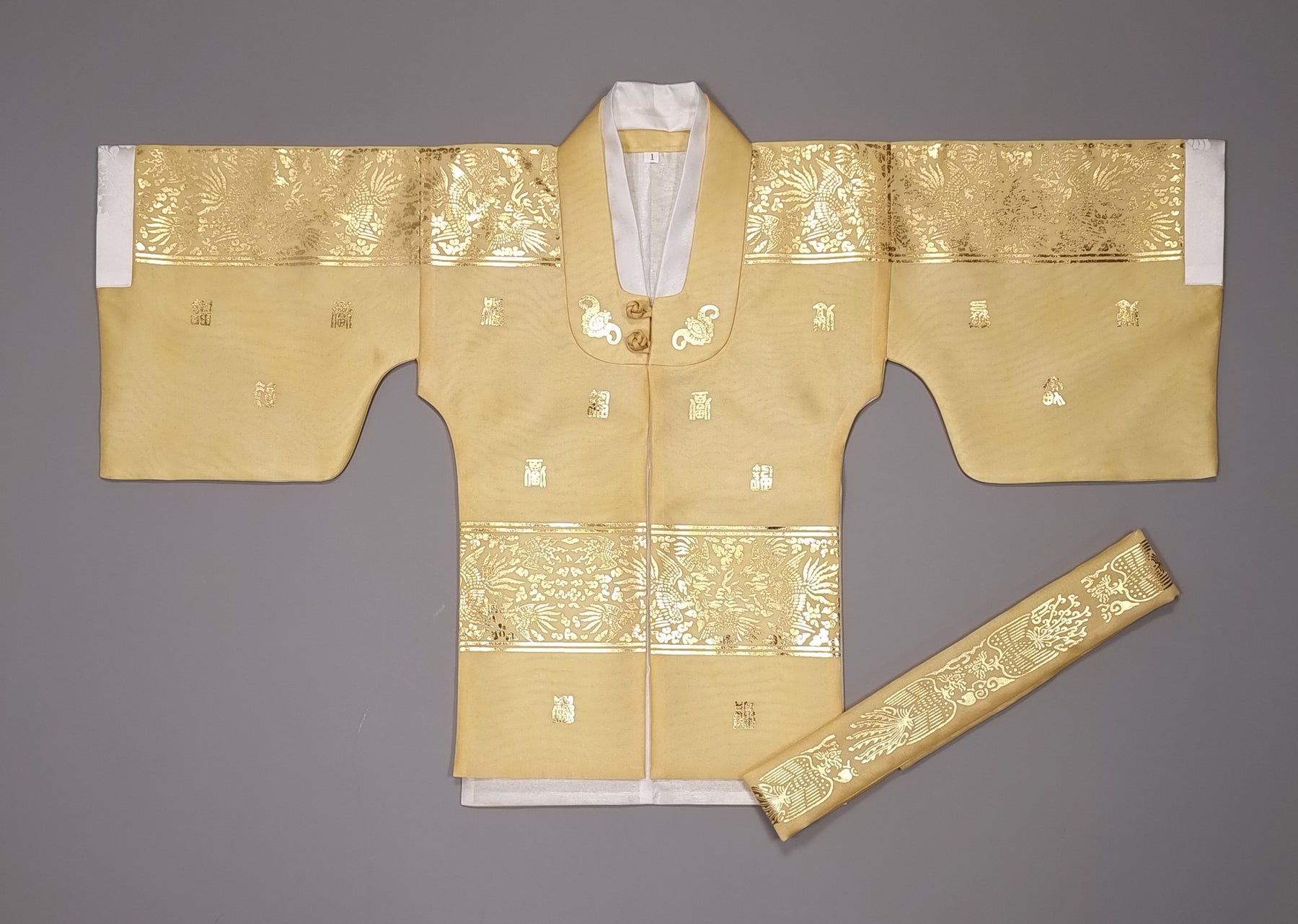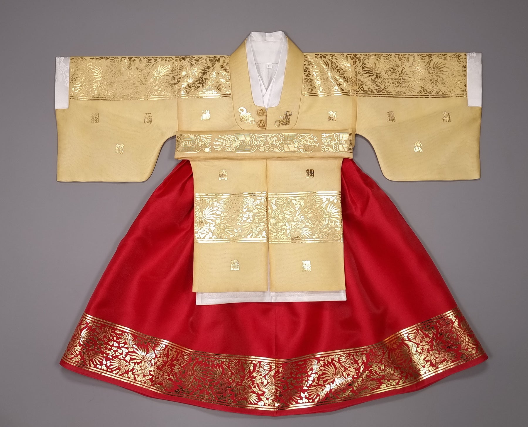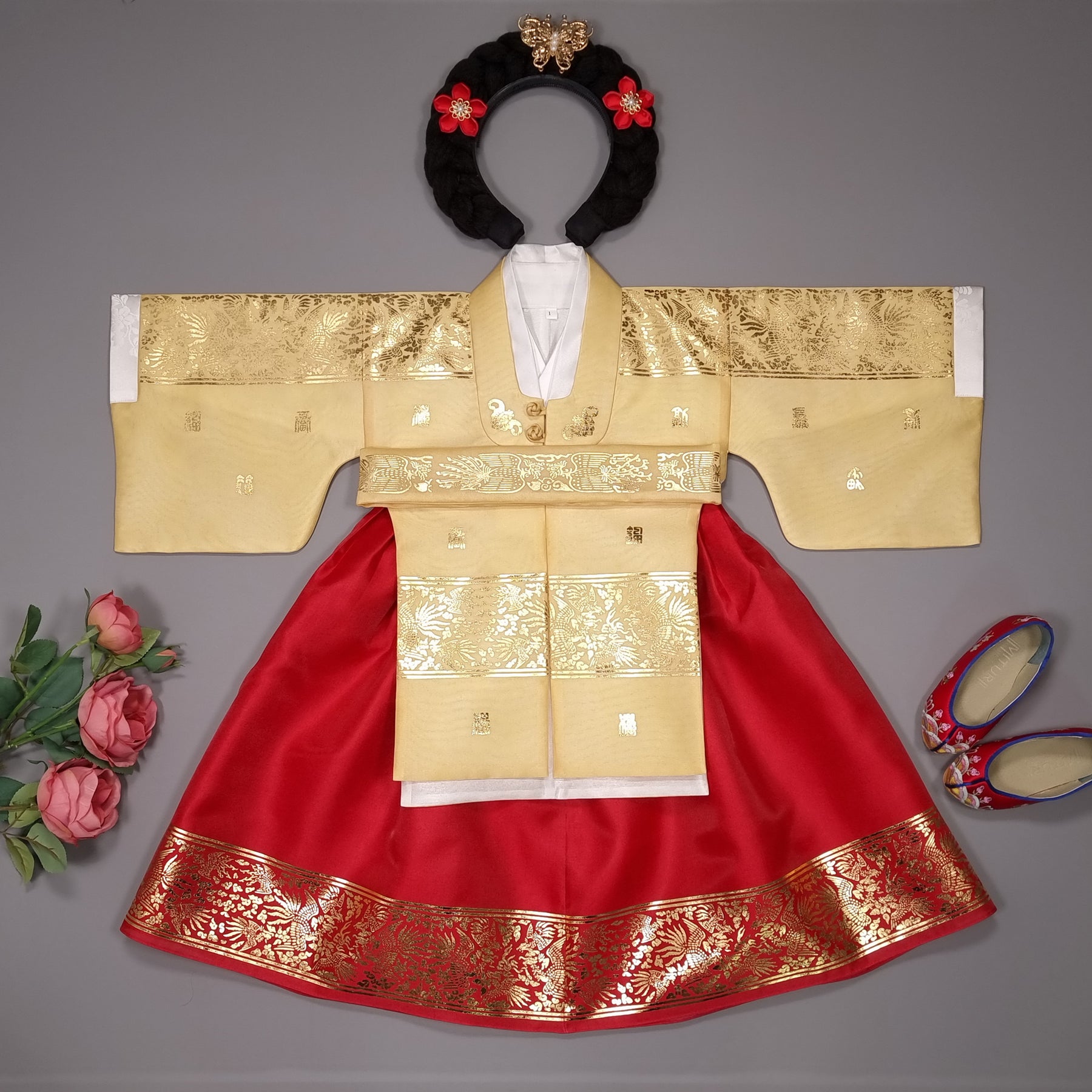 The hanbok includes INNER TOP JEOGORI / GOWN / SKIRT / BELT.