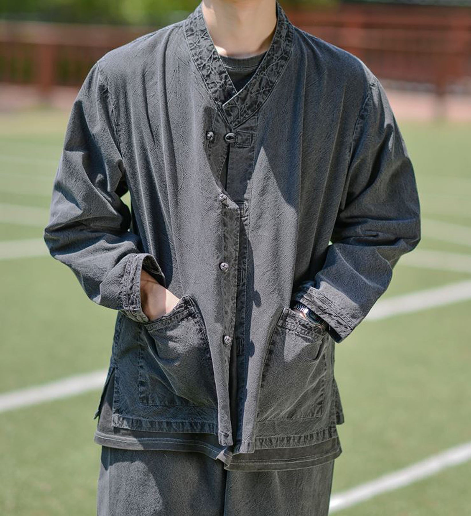 Korean Hanbok Washed Cotton Common Use Man Woman Casual Daily Clothing BTS Long Sleeve Charcoal 10042