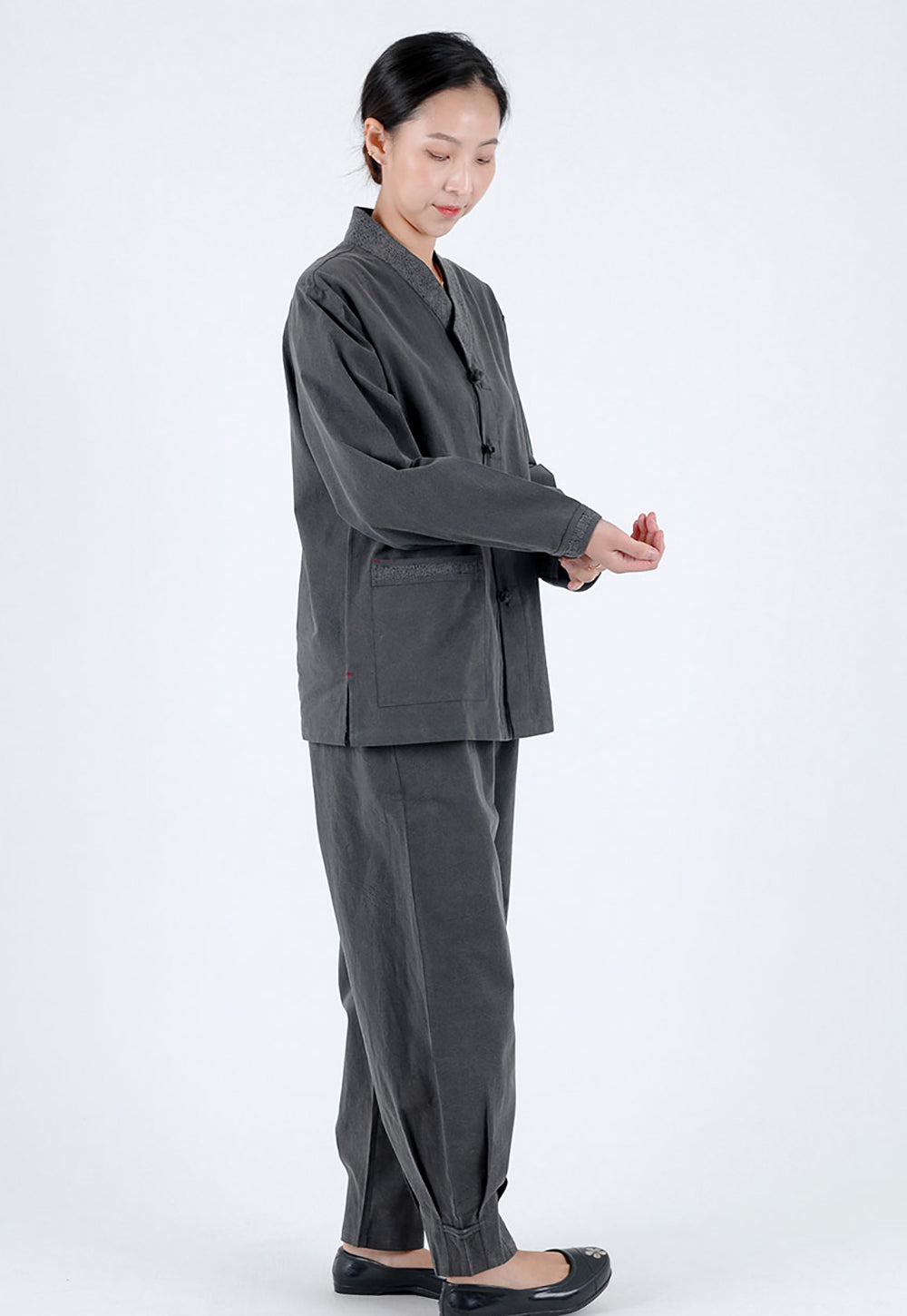 Korean Hanbok Washed Cotton Common Use Man Woman Casual Daily Clothing Meditation Yoga BTS Long Sleeve Charcoal Plus Size 24002