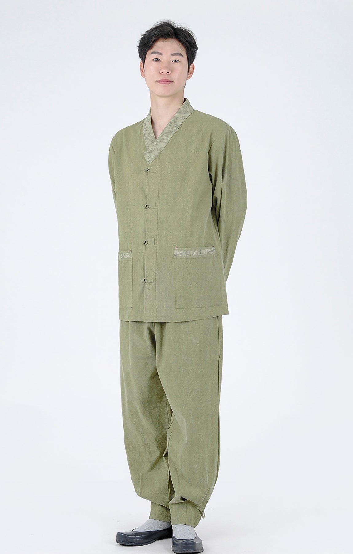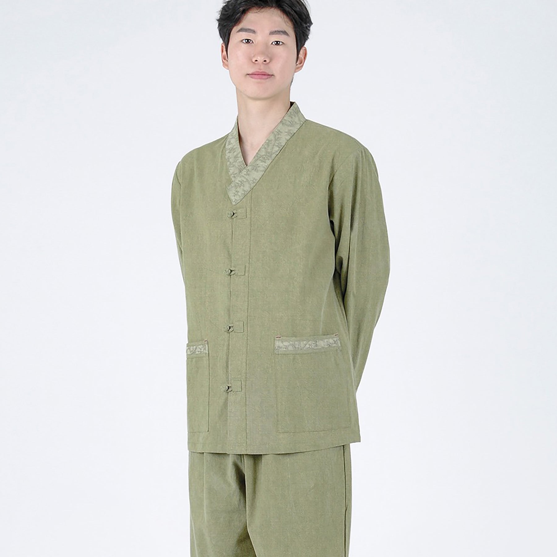Korean Hanbok Washed Cotton Common Use Man Woman Casual Daily Clothing Meditation Yoga BTS Long Sleeve Khaki 24002