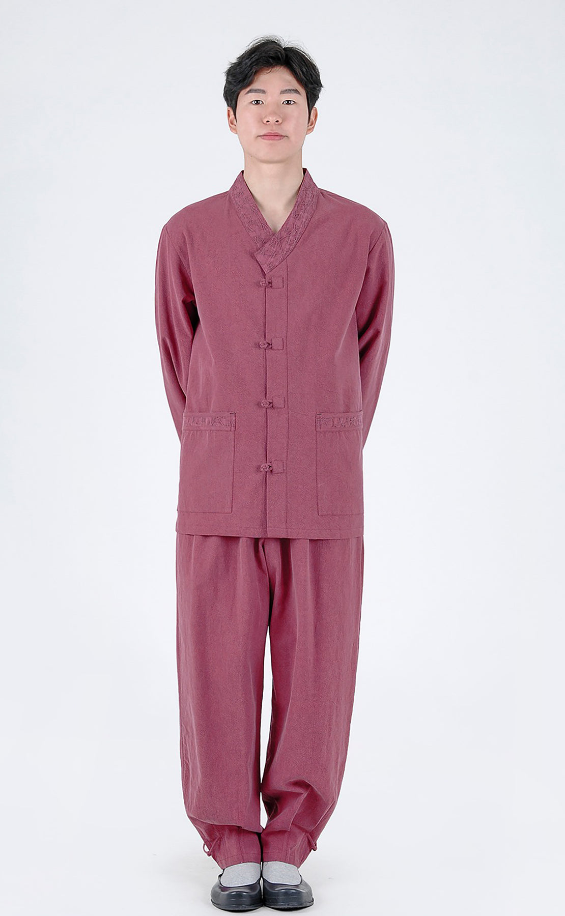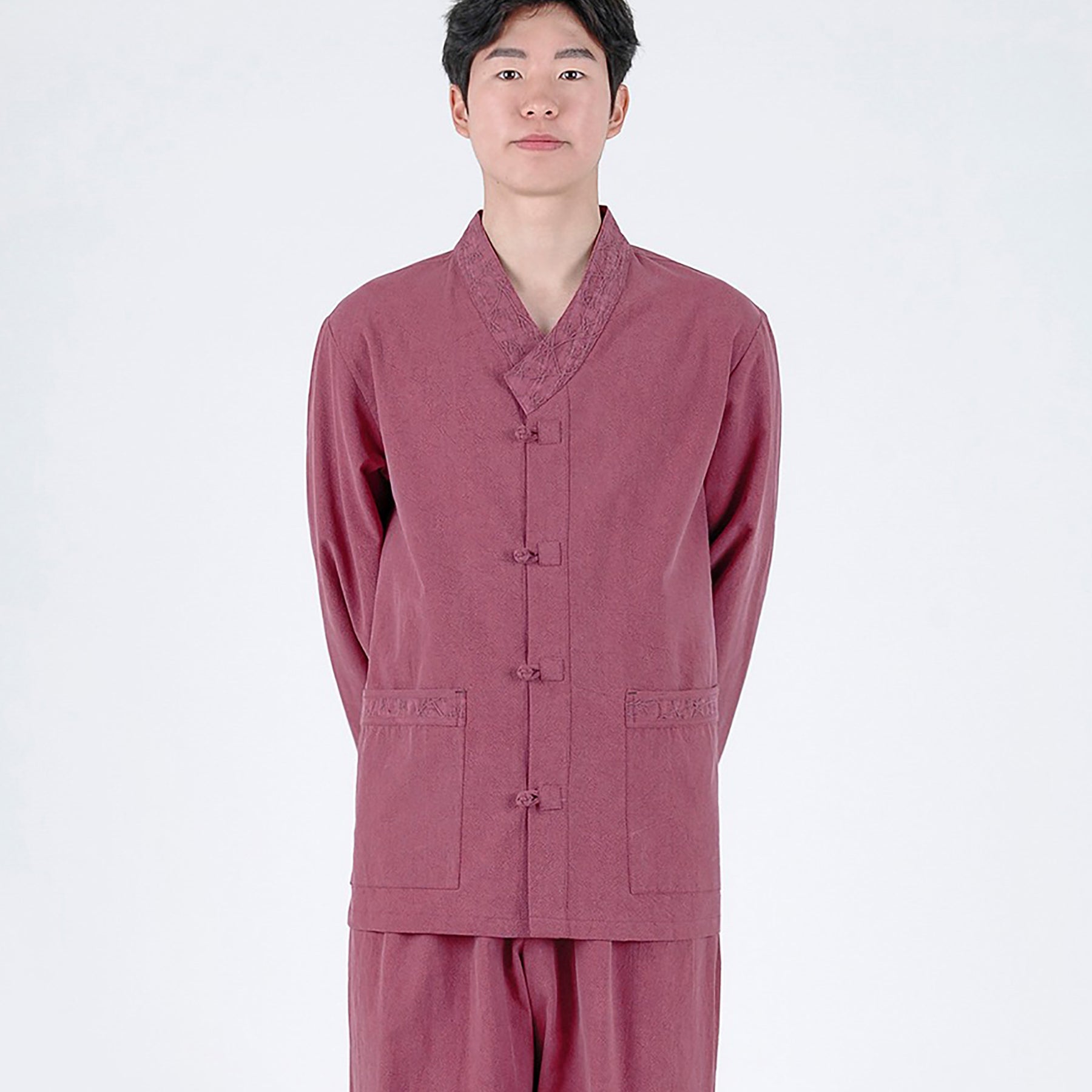 Korean Hanbok Washed Cotton Common Use Man Woman Casual Daily Clothing Meditation Yoga BTS Long Sleeve Pink 24002