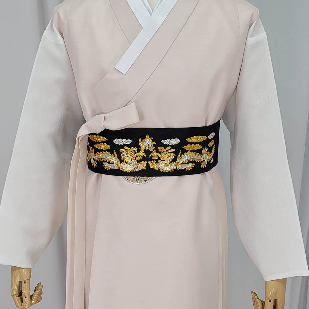 Korean Traditional Hanbok Belt Man Embroidery Black OB01