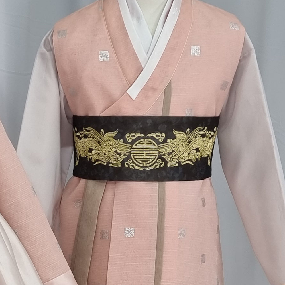 Korean Traditional Hanbok Belt Man Embroidery Pink OB03