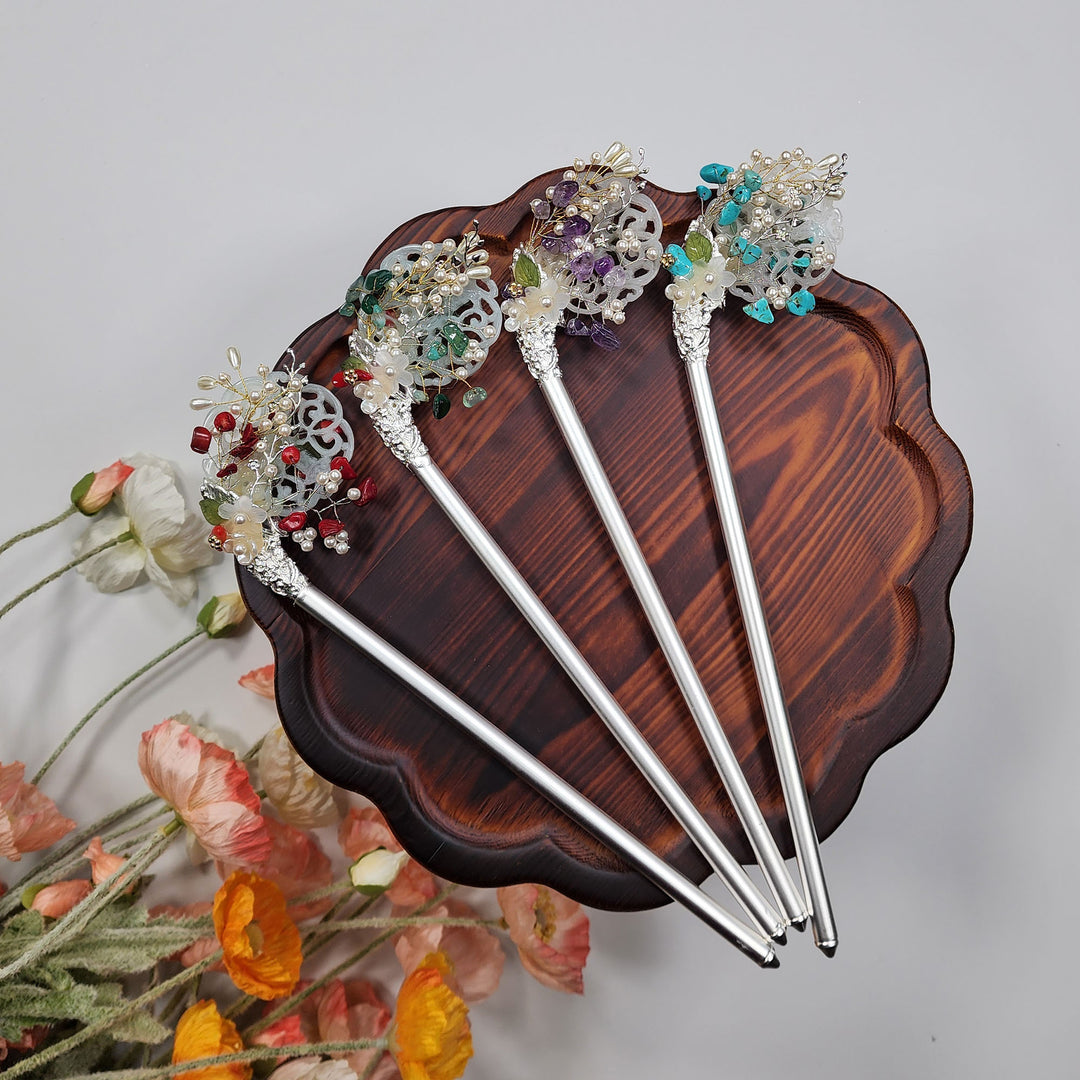 Korea Binyeo 비녀 Hair Accessory for Woman Hanbok Decoration Ornament Natural Stone Beads Flower 26 cm HB25