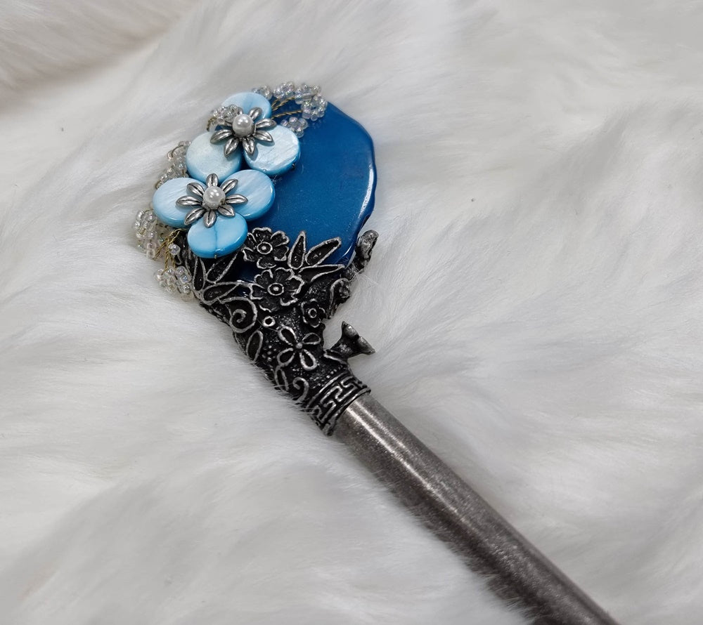 Korea Binyeo 비녀 Hair Accessory for Woman Hanbok Decoration Ornament Natural Stone Blue Flower 24cm 18