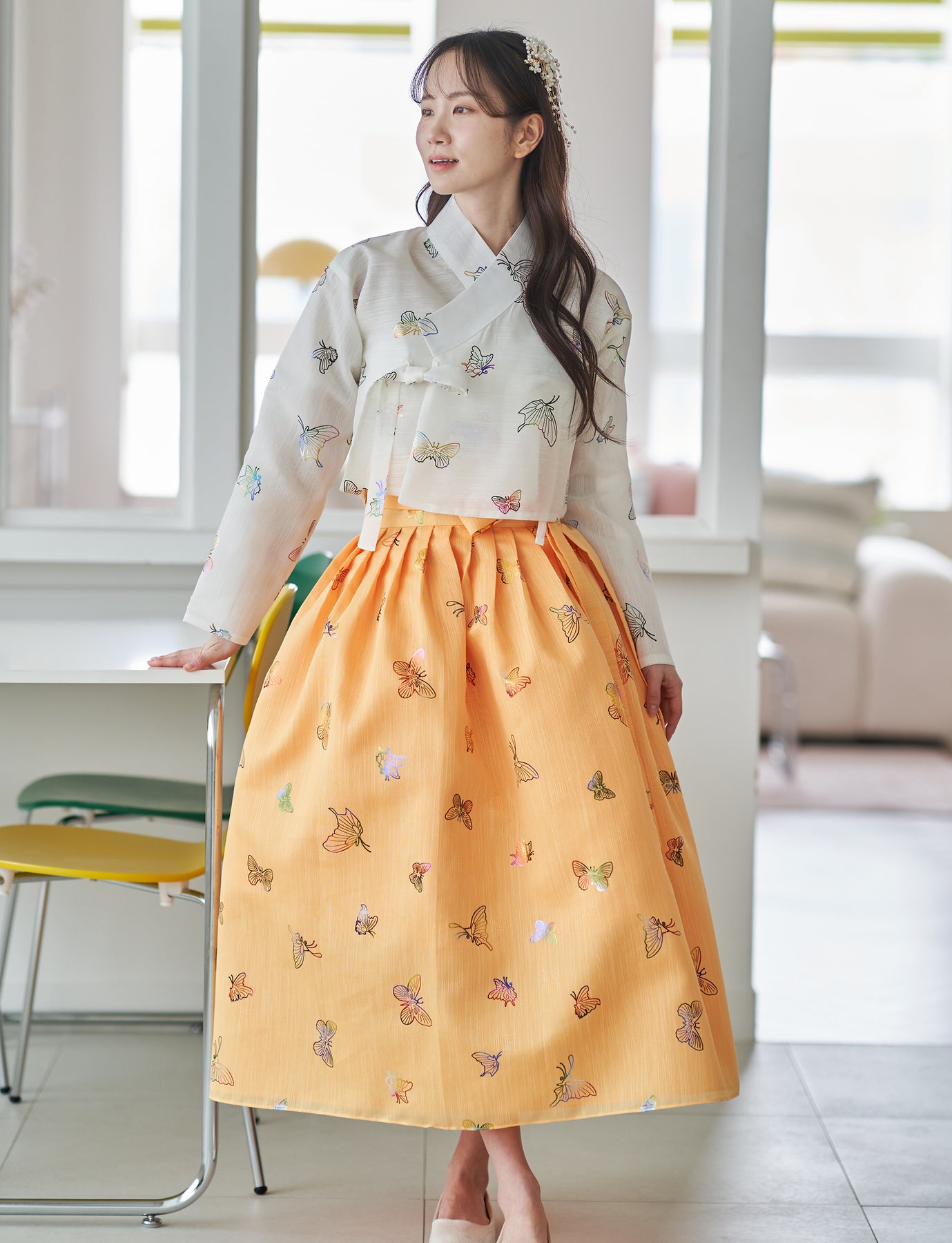 Korean Modern Daily Hanbok Casual Modernized Party Celebration Top Jeogori Butterfly Print SSN103