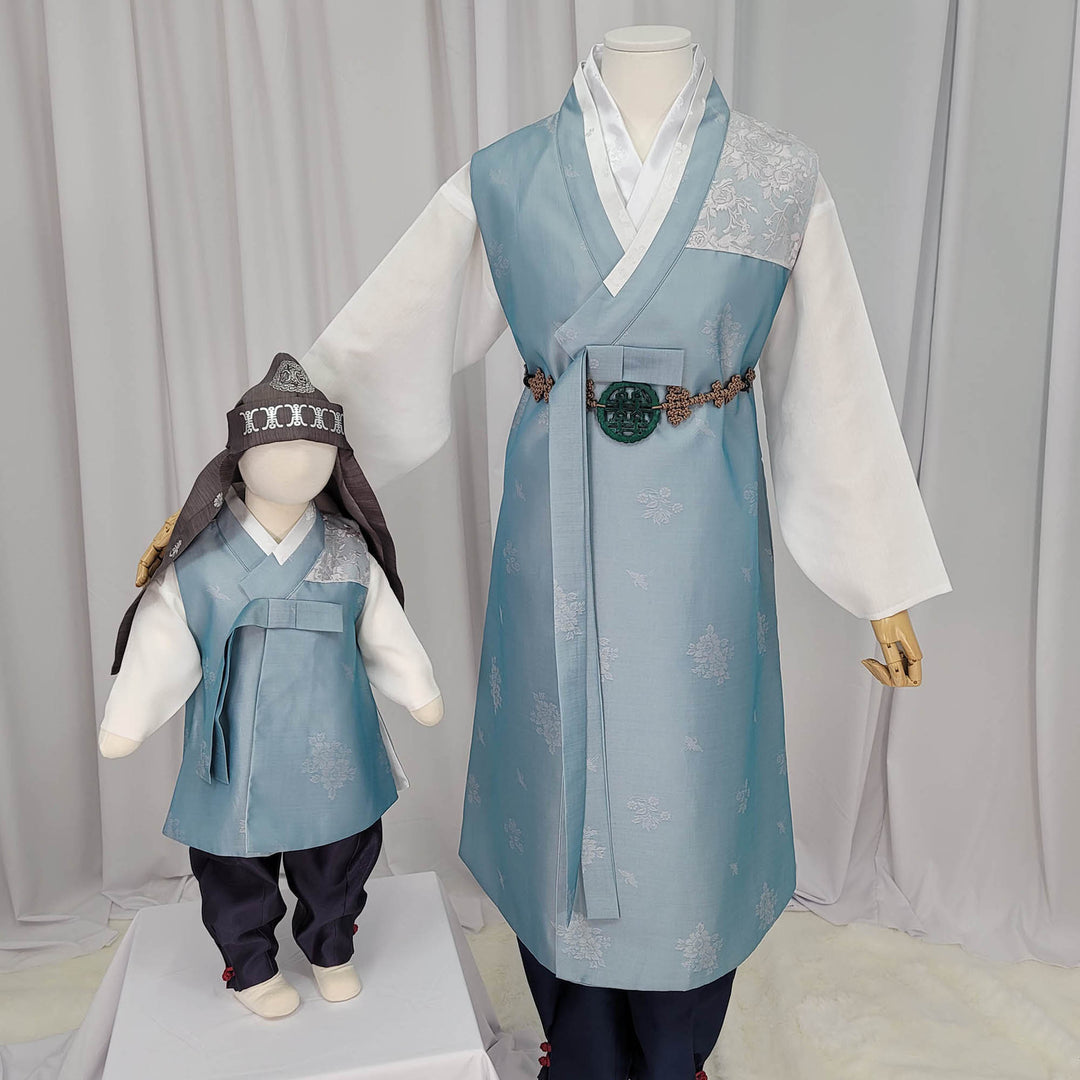Korean Traditional Man Male Personal Custom Hanbok Light Blue Dad Son Couple Wedding Party Ceremony OSM150