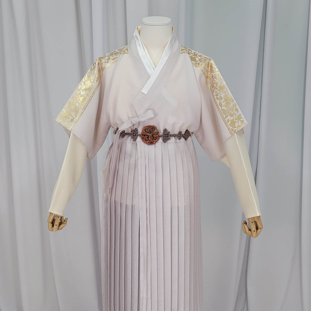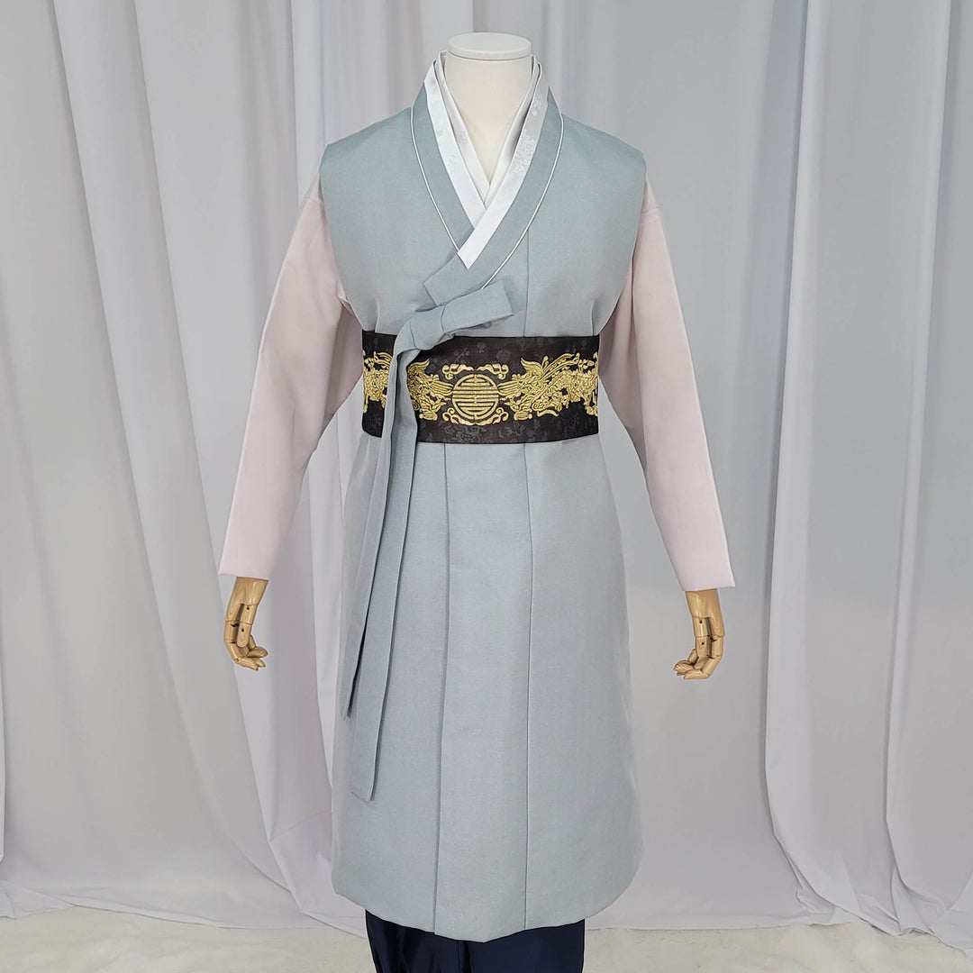 Korean Traditional Man Male Personal Custom Hanbok Light Gray Silver Print King's Design Wedding Party Ceremony OSM148